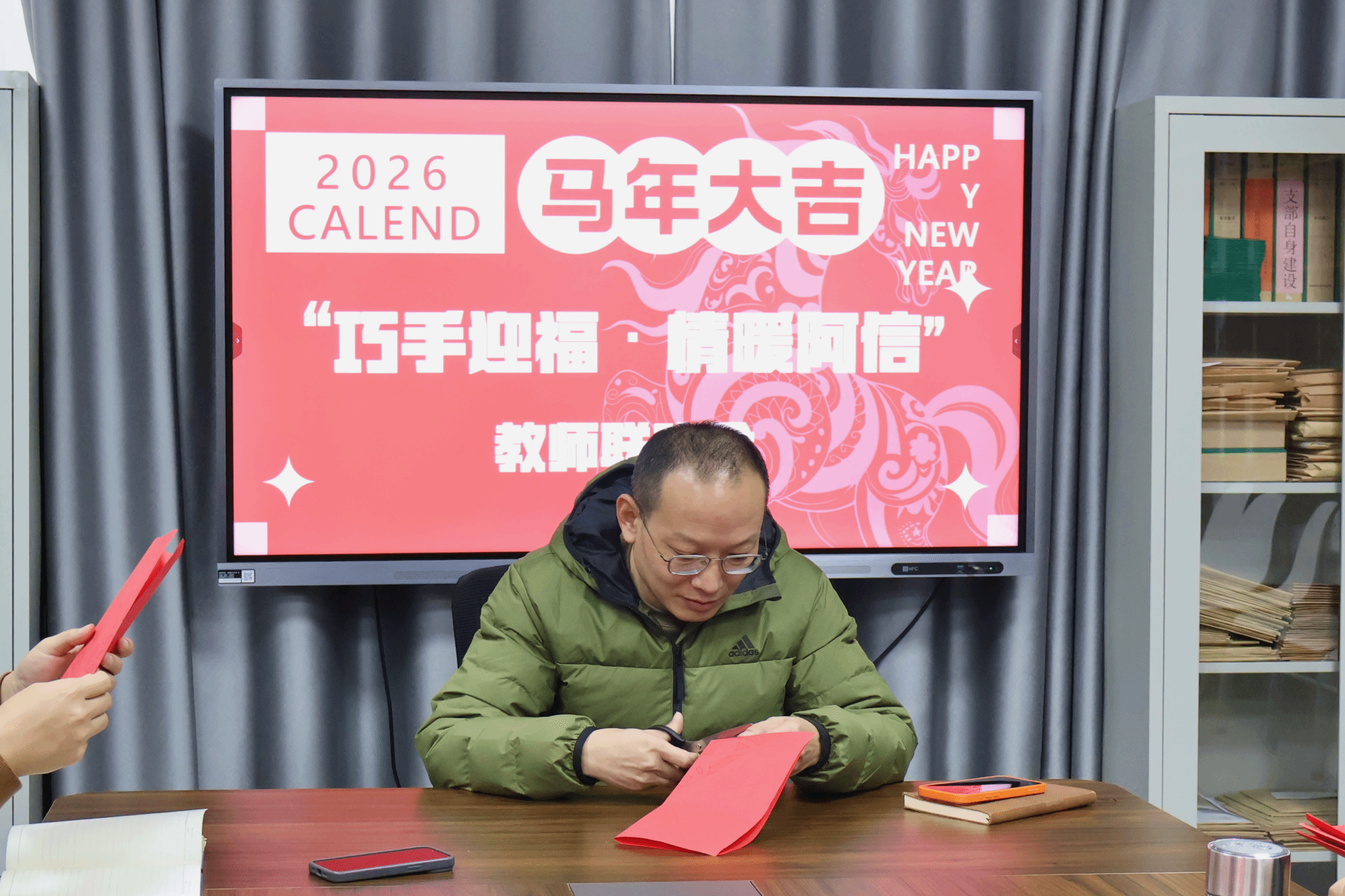 在接下来的“福韵定格”环节,老师们纷纷手持自己精心完成的剪纸作品,合影留念。镜头之下,一幅幅鲜活的“福”字与一张张灿烂的笑脸相映成趣,瞬间的闪光不仅留住了作品的风采,更汇聚成这个冬日午后最温暖动人的集体记忆。
