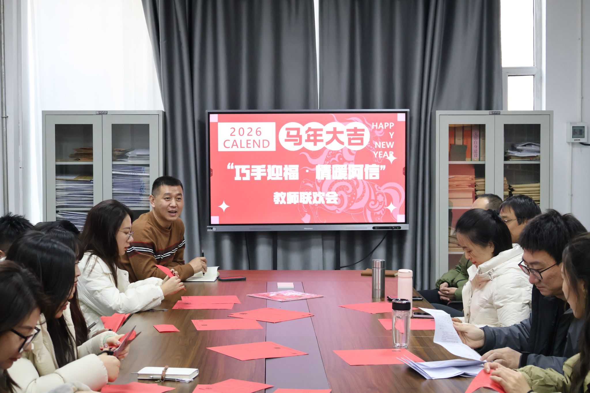为丰富教职工业余文化生活,增进情感联结,营造温馨和谐的学院氛围,2025年12月10日,晋中信息学院大健康学院在艺术楼116举办“巧手迎福·情暖阿信”教师主题联欢活动。本次活动以剪纸艺术为纽带,巧妙融合“集五福”互动形式,在传承中华优秀传统文化的同时,也为全院教职工送上诚挚的新春祝福。