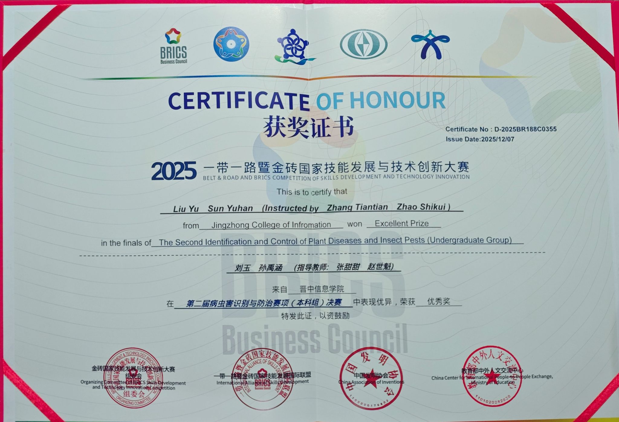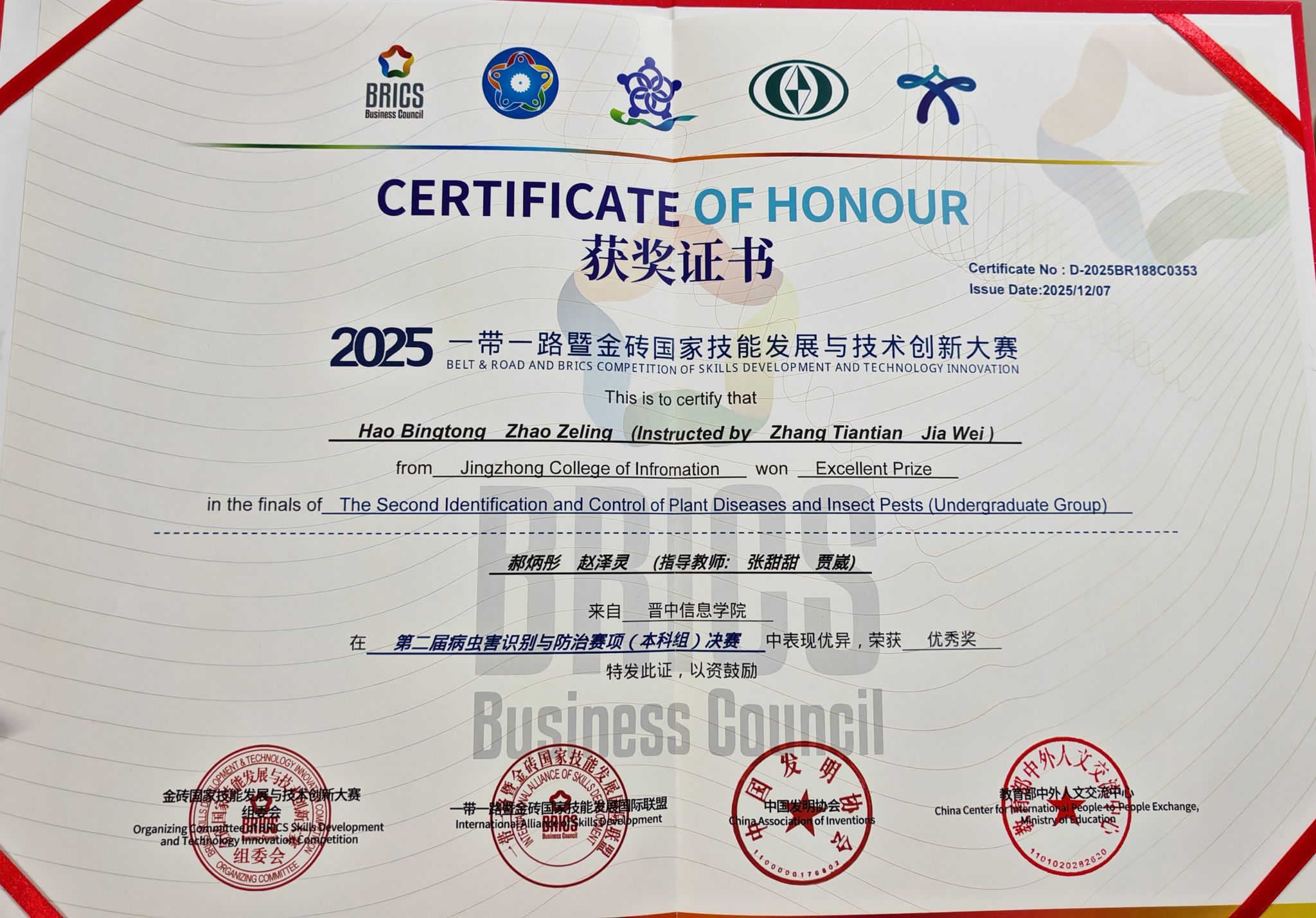 近日,2025一带一路暨金砖国家技能发展与技术创新大赛第二届病虫害识别与防治赛项顺利收官。来自全国106所院校的248支代表队、496名选手同台竞技,我校大健康学院园林专业学子在张甜甜、贾崴、赵世魁三位老师的精心指导下,凭借扎实的专业知识和娴熟的实操技能脱颖而出,最终斩获优秀奖两项,充分展现了学院在植物病虫害防治领域的人才培养成效。