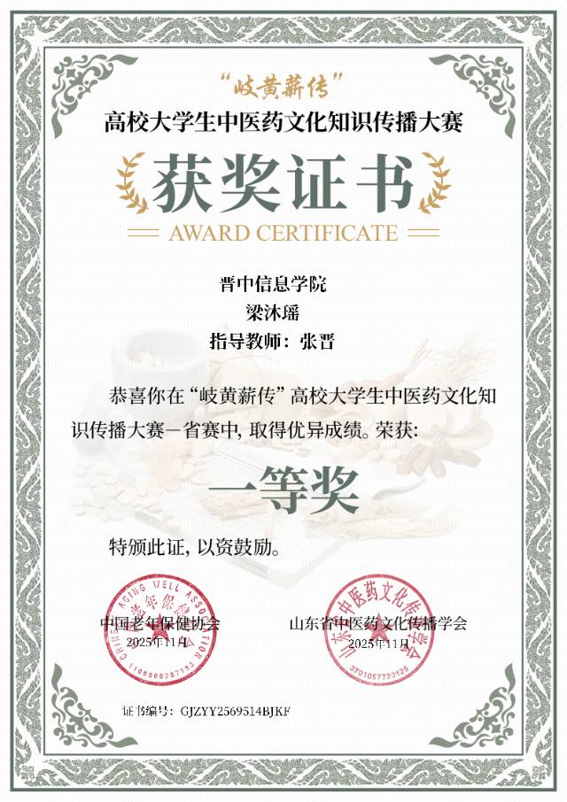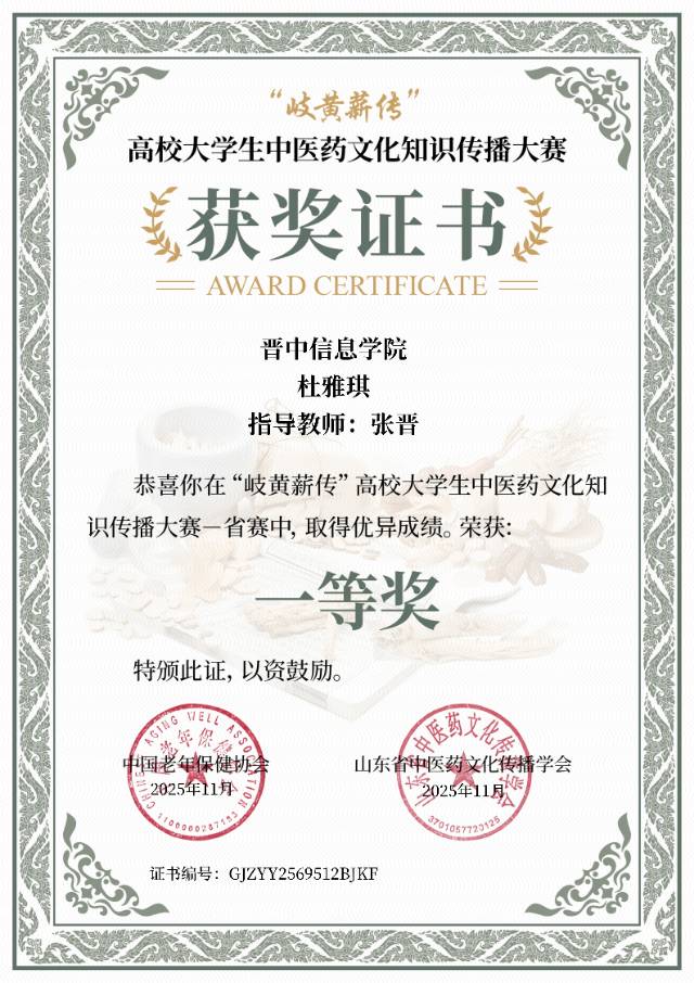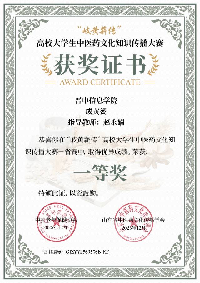 为弘扬中华优秀传统文化,推动中医药知识在青年学子中的传播与普及,晋中信息学院大健康学院积极响应由中国老年保健协会、山东省中医药文化传播学会联合主办的“岐黄薪传”高校大学生中医药文化知识传播大赛。本次大赛旨在通过知识竞赛、文化传播等形式,激发高校学生对中医药文化的学习热情,培养其文化自信与传播能力。中医药作为中华文明的瑰宝,蕴含着丰富的哲学思想和人文精神,是连接历史与现代的重要纽带。