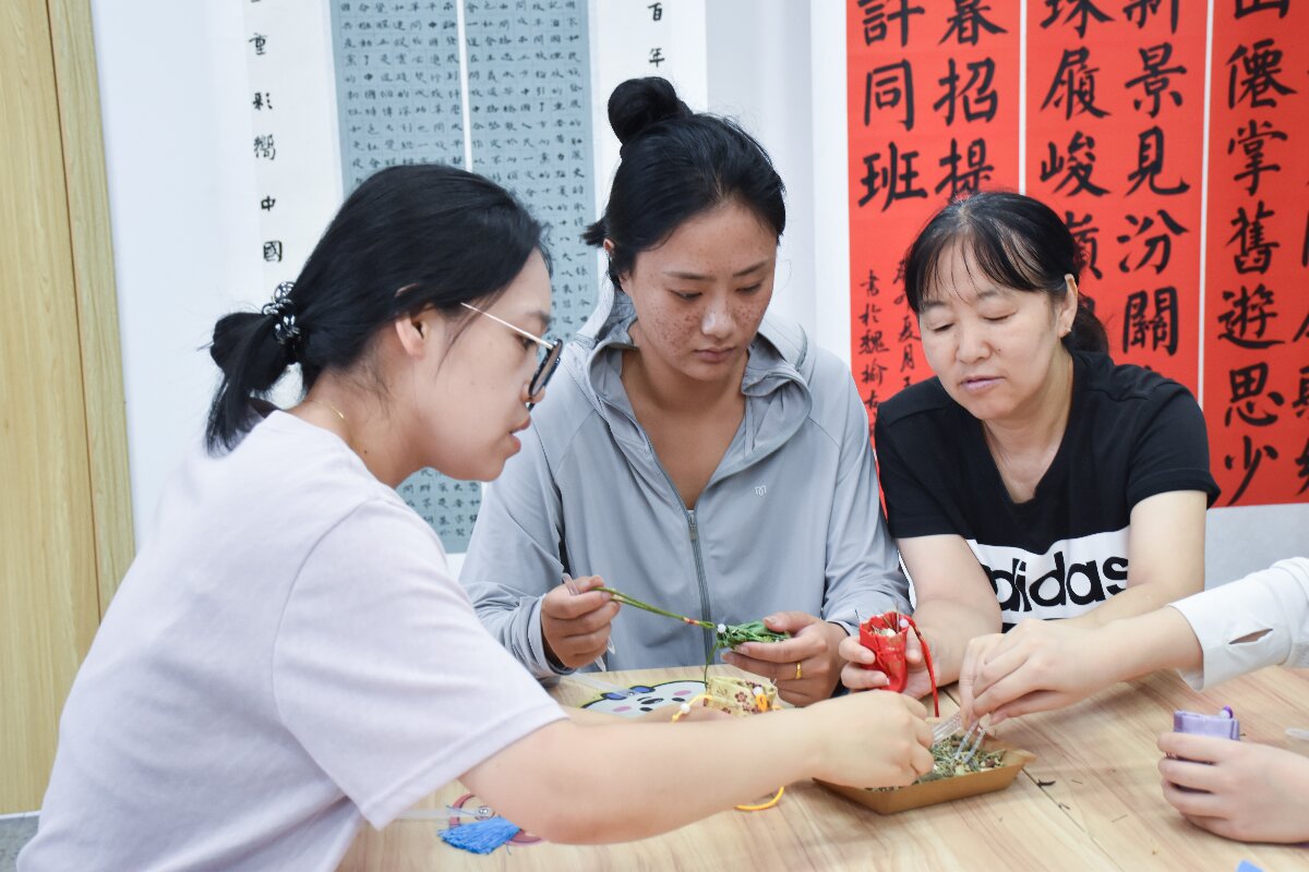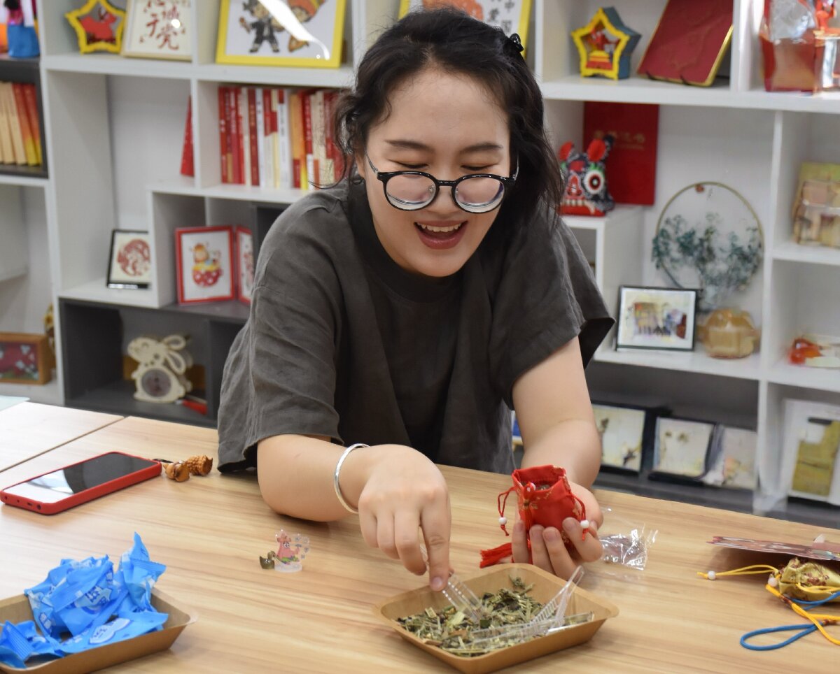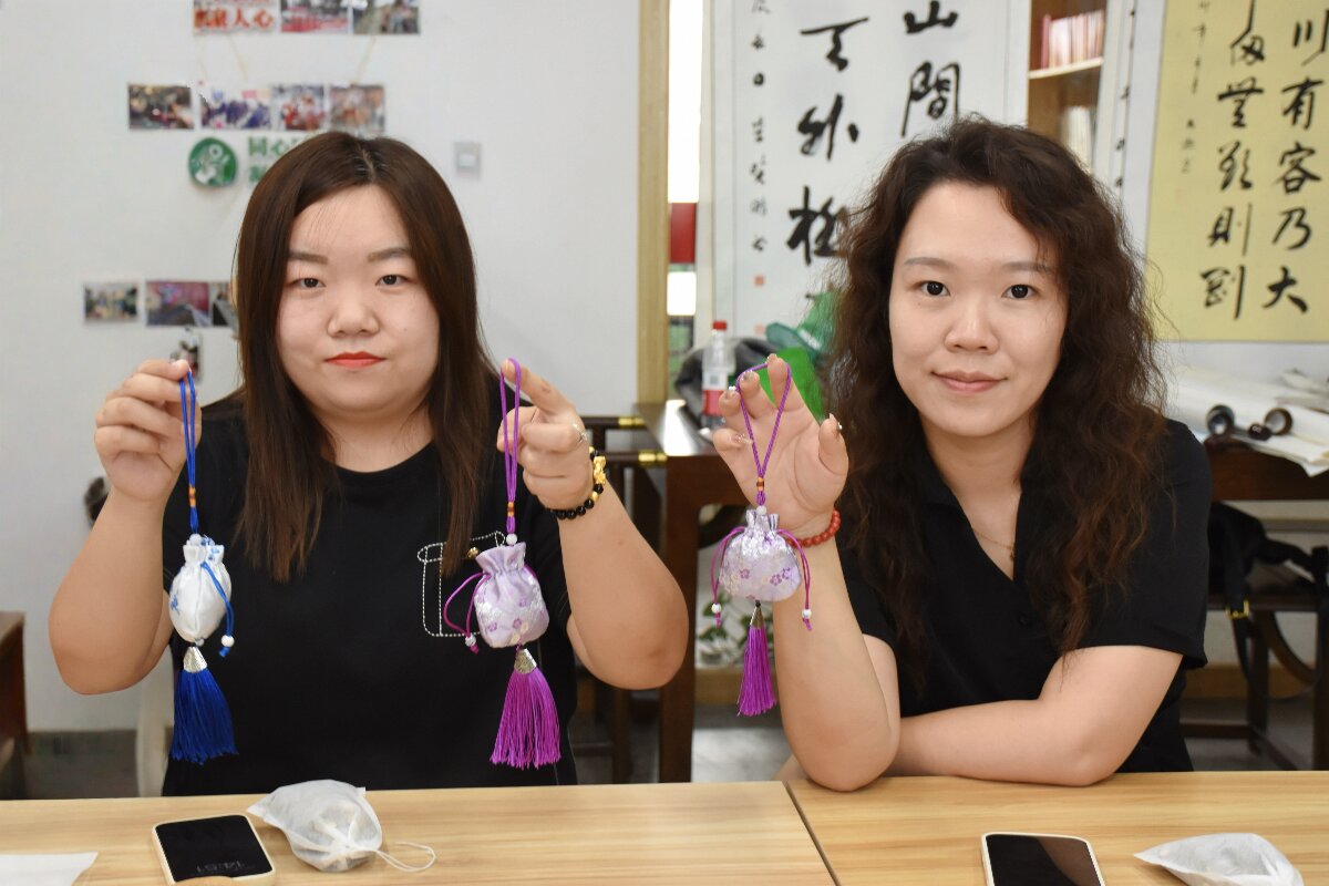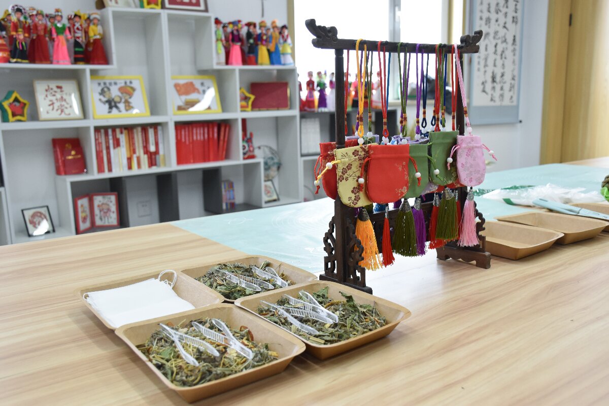 队员们精心挑选艾草、薄荷、陈皮等天然养生香料,逐一为居民讲解每种香料的健康价值,艾草能有效驱寒除湿、阻隔蚊虫侵扰,薄荷可清热解暑、唤醒昏沉精神,陈皮有助消化、理气健脾。随后,大家围坐在一起制作香囊,居民们在队员的指导下搭配香料比例、仔细封装布袋,指尖的专注里,满是对这份健康礼物的珍视。