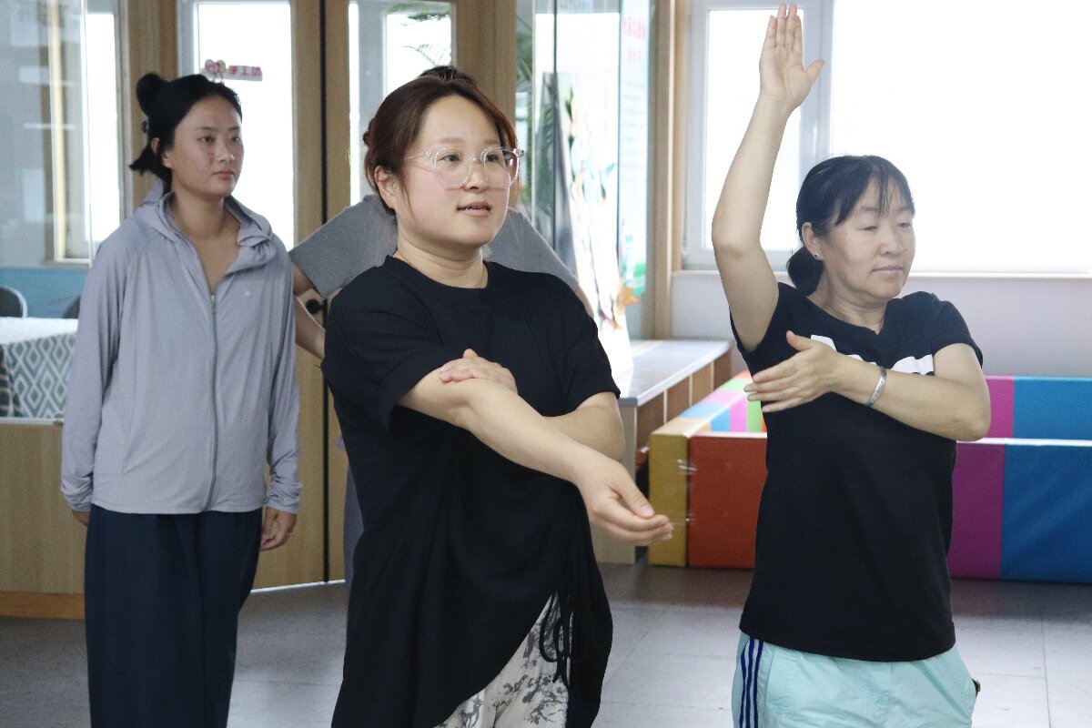 “八虚”是中医所说的人体八个薄弱部位,即两肘、两腋、两髀、两腘,这些部位易积累邪气,也是疾病易发之处。队员们提前跟着专业视频学习拍八虚操的标准动作,掌握每个动作的发力方式和拍打力度。向居民们讲解拍八虚操的养生原理,拍打肘窝可疏通心经、心包经,缓解心慌、胸闷,拍打髀窝有助于调理脾胃,增强消化功能。随后,队员们带领居民跟着音乐节奏练习,从准备姿势到每个部位的拍打次数、力度控制,耐心纠正。古老的中医智慧化作可触摸的健康律动,每一组动作都是向活力的靠近,为居民们筑起一道抵御疾病的“天然屏障”。