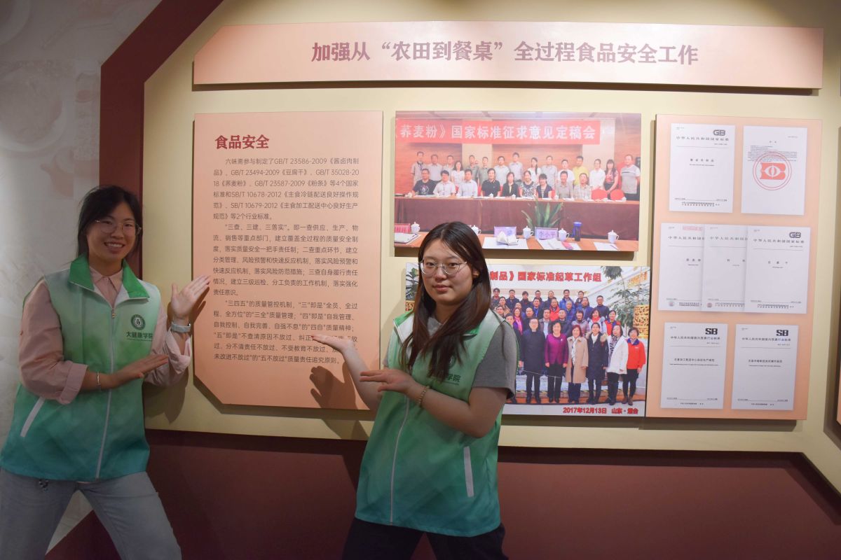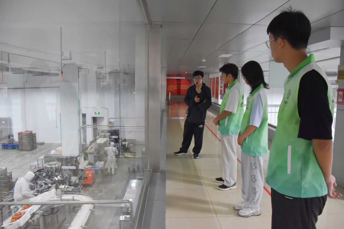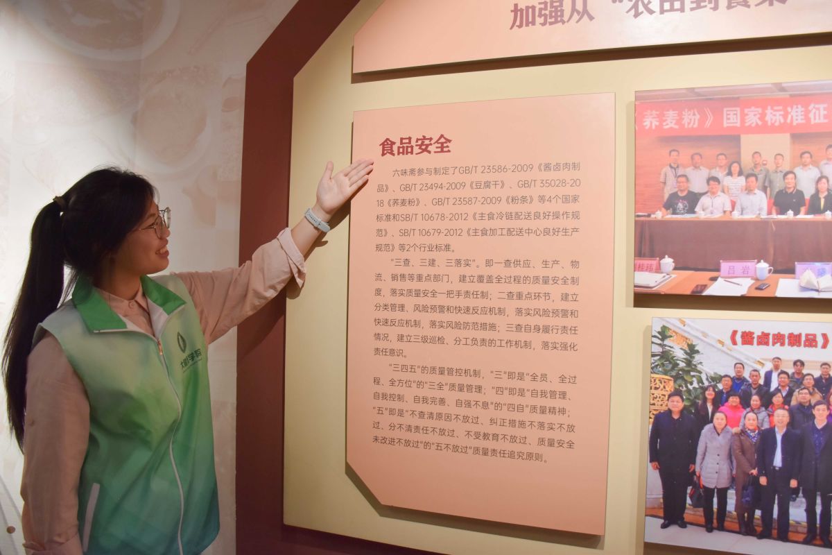 从传统食养智慧中解码健康“π”密,以扎实的专业储备为基,携十足冲劲开启对食品安全体系与健康标准的深度探寻,层层拆解着守护健康的内在逻辑与实践路径。走进六味斋云梦坞文化产业园,在这里,每一份传统美食都藏着与健康相关的密码,等待着被探寻与解读。智能化生产车间区域,“加强从‘农田到餐桌’全过程食品安全工作”的展示墙,融入生产场景,无声传递食安坚守。透明玻璃后酱肉的生产流程清晰铺展,饮食安全保障是贯穿全程的核心重点,从原料入场的农残检测,到生产环节的微生物监控,再到成品出厂的指标核验,每一道程序都筑起坚不可摧的守护健康屏障。讲解员指着“古法发酵·零添加”的工艺说明牌为大家讲述到,“这看似简单的八个字,背后是原料农残检测、发酵环境微生物监控、成品营养成分分析等一系列食品质量与安全专业标准的严格落地”,顺着讲解员的讲述,队员们也逐渐明晰如何用传统技艺守护健康的每一道防线,也读懂了产业园将健康理念深植于生产细节的坚守。