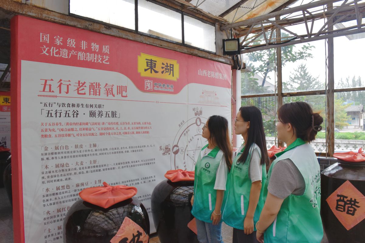 在承载3000年酿醋历史的山西老陈醋厂,“醋”与健康的关联隐于其中。踏入厂区,醇厚醋香便悠悠漫来,那些沉淀千年的技术与岁月,融入的是“顺应自然、平衡调和”的健康智慧。团队成员顺着生产线慢慢挪动脚步,生产线的每一段流程都透着对“美味与健康平衡”的考量,蒸煮车间蒸汽裹挟谷物清香,传送带上的原料裹挟着健康因子。陈酿区的陶缸静静伫立,是对天然健康的本真守护:从原料入缸前的农残、重金属检测,到发酵过程中菌落总数、有机酸含量的动态监测,再到成品出厂时的食品安全指标全项核验,这传统工艺里隐藏着健康与美味共生,本就是建立在食安专业标准层层守护的底色之上。队员们品尝了不同度数的醋,酸爽醇厚在舌尖漾开,切实体会到了传统酿醋工艺赋予健康美味的独特张力,于酸香中深刻感受到“以食为养”的智慧。