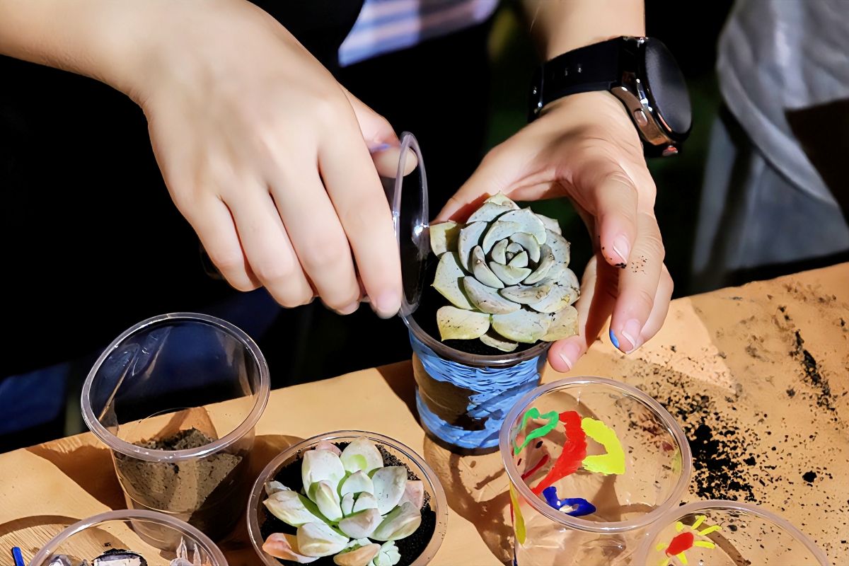 特别设置的“环保盲盒”即兴创作环节将活动推向高潮,某小组在一分钟限时创作中以咖啡渣拼贴“地球”图案,直观呈现环保主题。专业教师结合多肉盆栽培育实例进行科学阐释:“咖啡渣作为栽培基质,两周内可自然降解为植物养分,这种闭环式环保实践正是可持续生活的微观体现。”