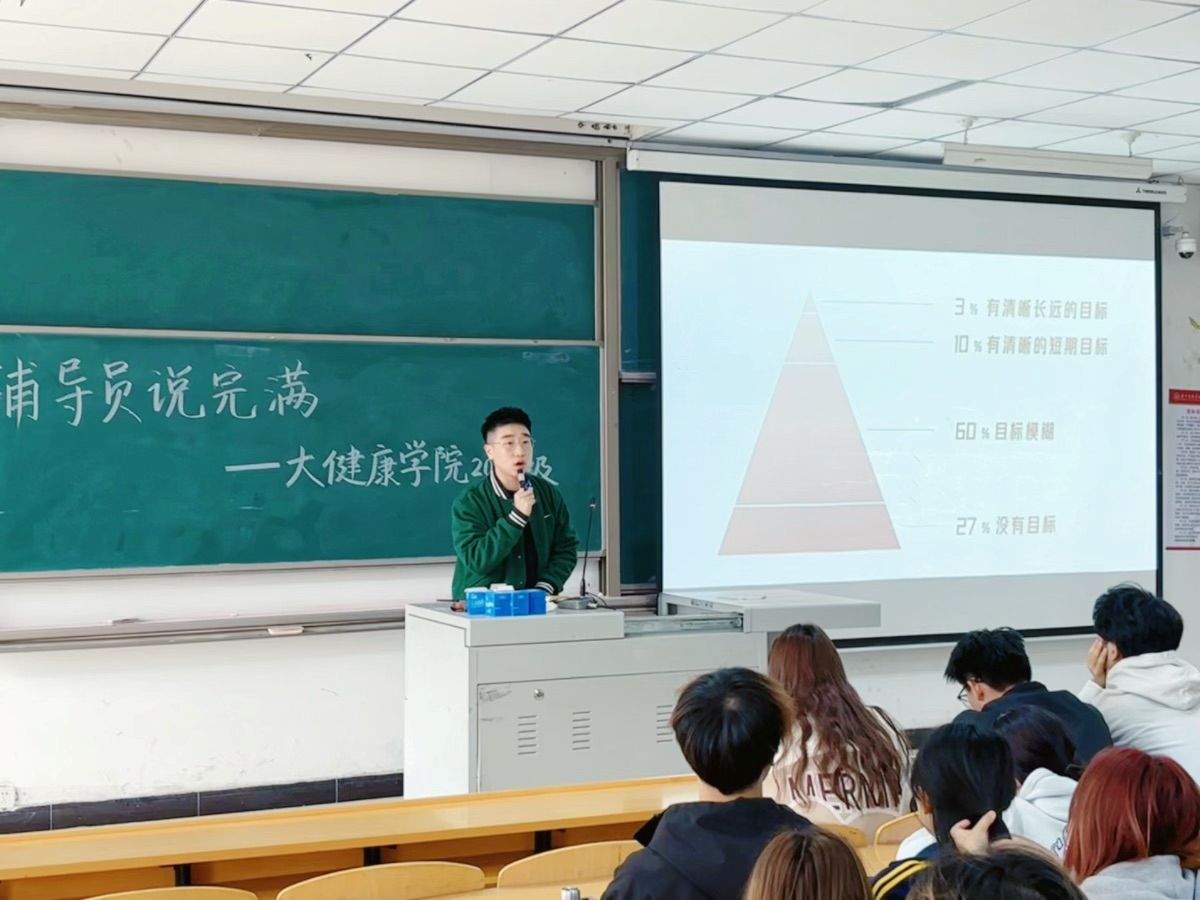 为帮助同学们拨开大学的迷茫,明确成长方向,9月18日,大健康学院2024级辅导员王子钰于2教101开展了以“寻找学习的‘永动机’”为主题的辅导员说完满活动。