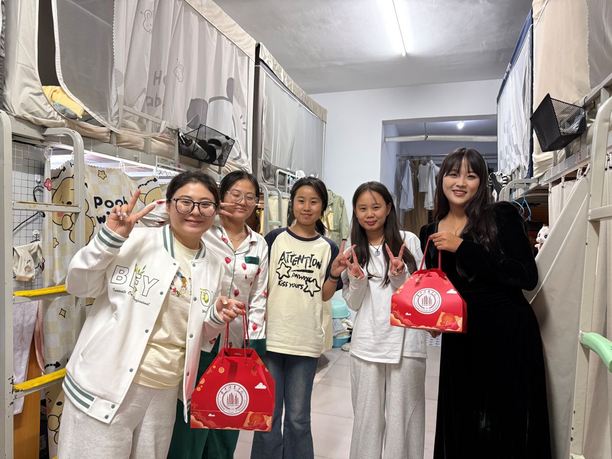 一句句关切的询问、一声声温暖的叮嘱,让留校学子倍感亲切。针对部分同学提出的科研资料查阅、实习沟通协调等需求,老师们现场记录并承诺尽快对接资源,为学子们解决实际问题。“送月饼不是简单的‘递礼物’,而是想通过入户走访,让学子们感受到‘被牵挂’。”大健康学院表示,未来学校会把“宿舍暖心走访”变成常态化活动,不仅在节日里送关怀,更会定期了解学子的生活、学习需求,让校园真正成为留校学子的“第二个家”。夜色渐深,宿舍楼道里的笑声渐渐散去,但那份藏在月饼里的温暖,却留在了每位留校学子的心里。