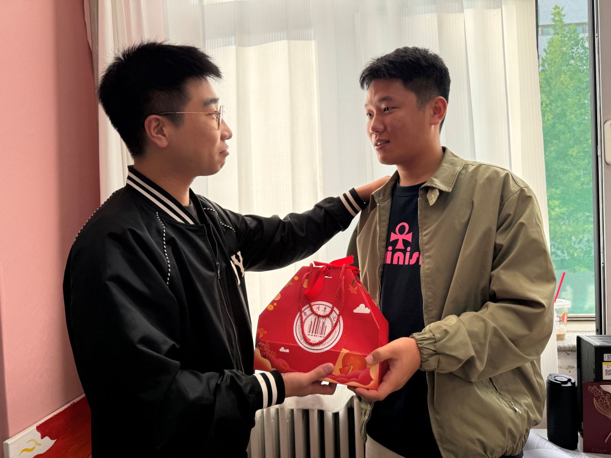 更贴心的是,志愿者还提前做了“学情调研”:对备考考研、考公的学子,额外准备了印有“一战成硕”“成功上岸”的书签;对外省学子,送上了家乡的风味月饼;对大一新生,则搭配了校园地图,方便他们熟悉校园。他们从辅导员那里了解到每位留校学子的小习惯,就是想让月饼“送到心坎里”。