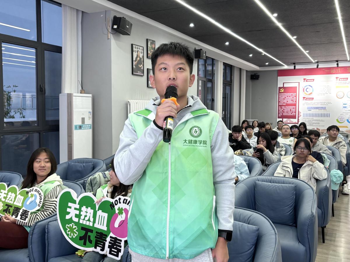 随后,协会主席牛赫接过话筒,轻轻展开协会的公益长卷:从学生生活安全知识竞赛的严谨,到全国青少年乡村振兴知识科普大赛的深刻,再到预防艾滋病知识竞赛的温情,这支创办于2015年的队伍,始终带着“奉献、友爱、互助、进步”的初心,在“筑梦支教”“绿‘环’梦‘净’”“健康膳食”的赛道上稳步前行。“志愿不是一时热血,是日复一日的坚守。”这句话落进每个人心里,也让大家读懂了“益”心“益”意背后的重量——那是大健康学院学子对社会最赤诚的告白。