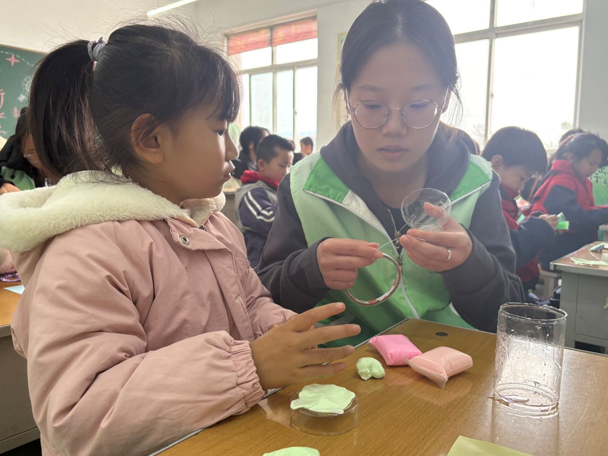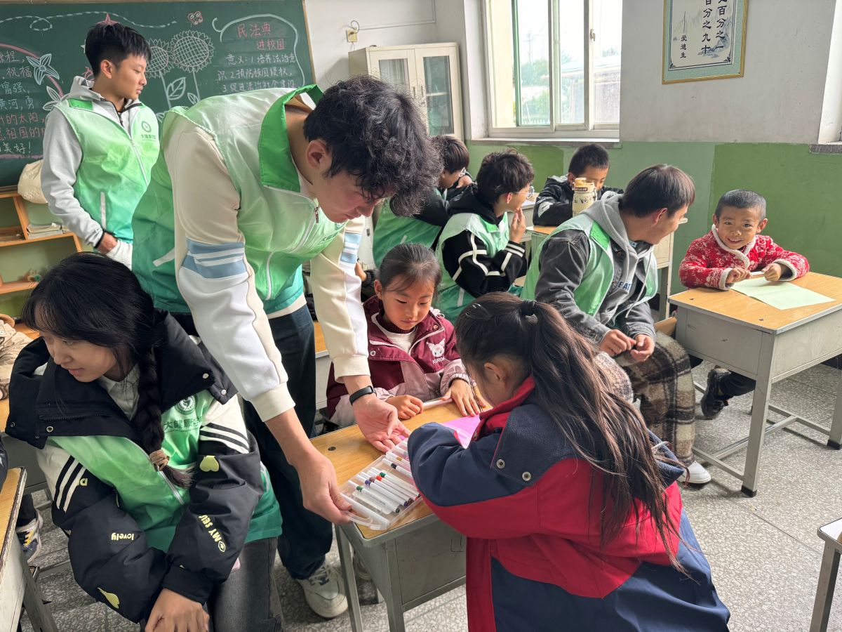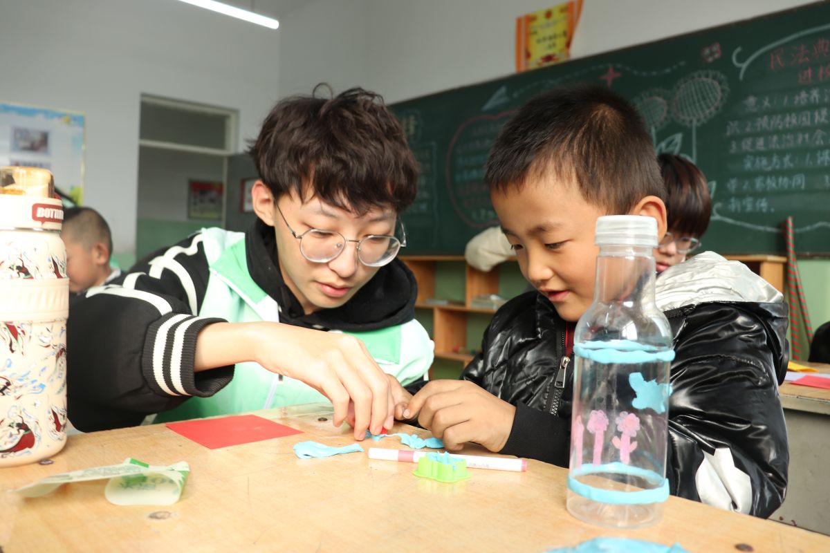 队员们提前进行了充分的准备工作,备齐了彩纸、黏土、画笔等材料,并提供了废旧饮料瓶、纸箱等物品,旨在让孩子们在更有趣、更具互动性的环境中体验艺术、展现创意。