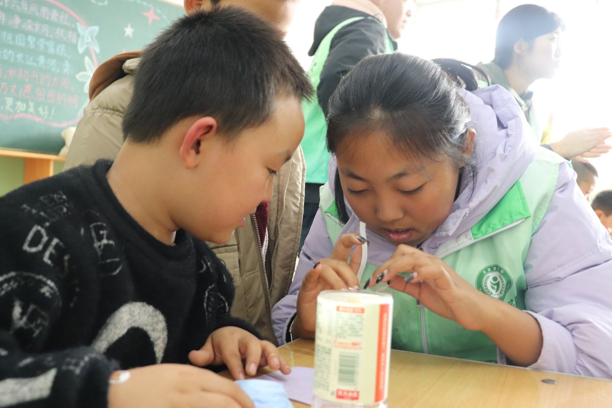 同时,当孩子们在剪裁、粘贴过程中遇到难题时,队员们会轻柔地握住他们的小手,共同完成关键步骤。对于那些拥有独特创意的孩子,队员们则给予充分的肯定和鼓励,让他们勇敢地展现自我。在整个互动中,队员们不仅教授了基础的手工技艺,更通过鼓励的话语和温馨的笑容,为孩子们注入了满满的自信。