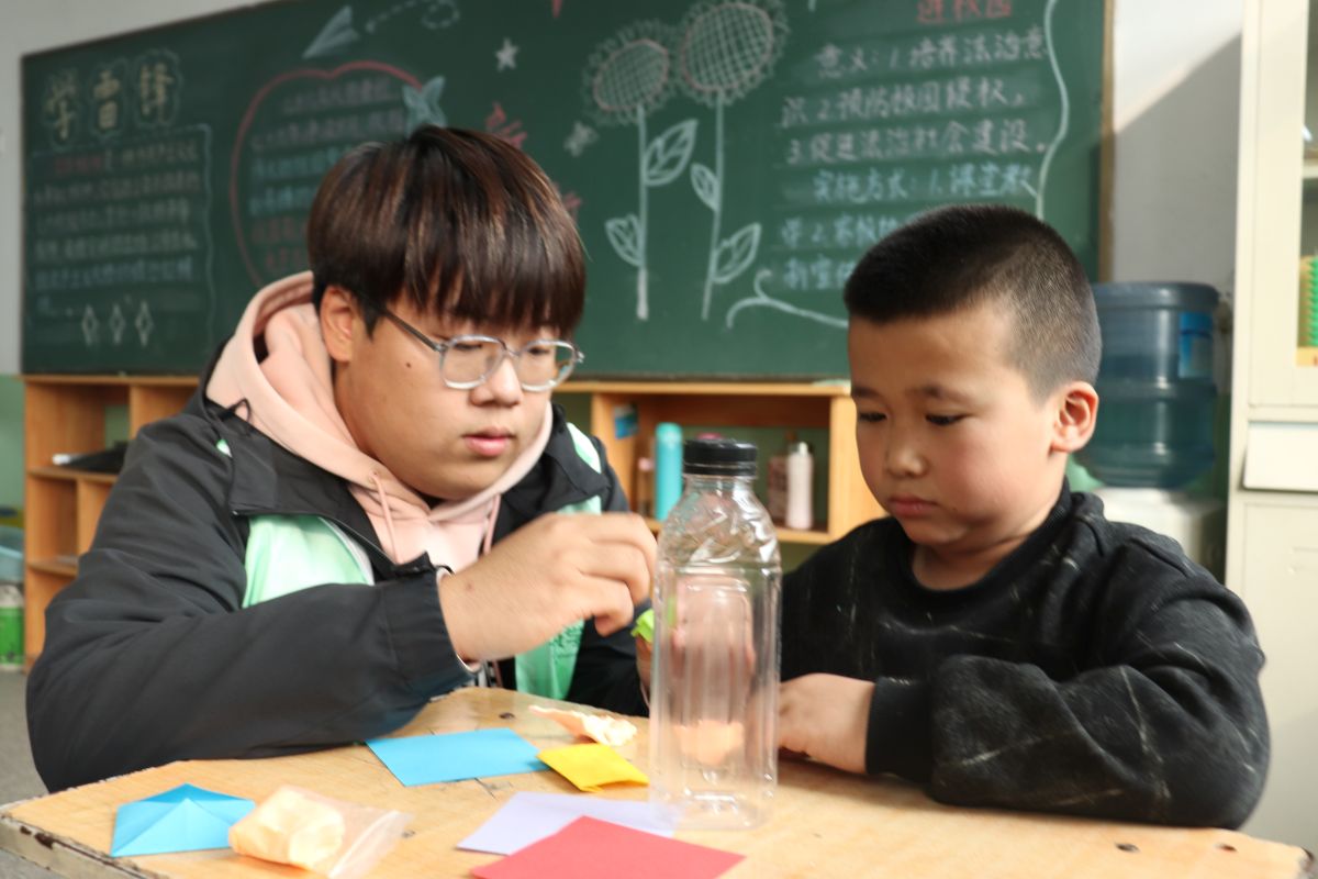 队员们在一旁巡回指导,针对不同的创作类型,提供个性化的帮助。他们教导折纸的孩子们如何精准对齐边角,并为绘画的孩子们提出色彩搭配的宝贵建议。整个教室洋溢着动手实践的乐趣与浓厚的艺术氛围。