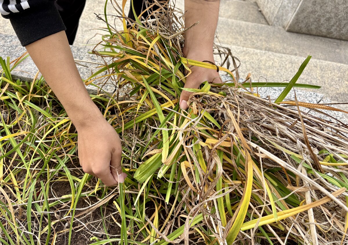 花坛清理工作以分类处理、标准操作为原则,通过明确的协作分工让整治过程既有序又高效。地面植株清理与地下根系挖掘同步开展,相互衔接从根本上降低杂草再次生长的概率,并按可回收、其他垃圾分别收纳,为后续垃圾的合理处理做好准备。
