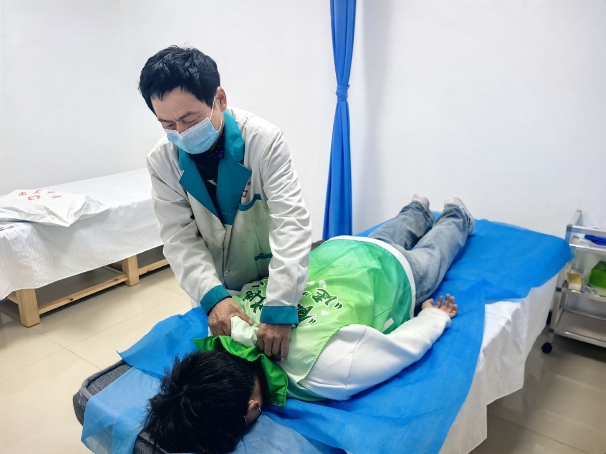 诊疗室里更是惊喜满满!望闻问切的现代化器械被整齐的摆放在诊疗室,大家全神贯注,细细揣摩每一件器械。针灸科与推拿科的诊室里,艾草的余温裹着木质药柜的沉香。指尖落处,医师展演的针砭推拿技法如行云轻落,志愿者的目光紧随医师的手法,他们的目光中流露出专注,千年医道的精微和温煦便悄悄传递给了每一位驻足者!