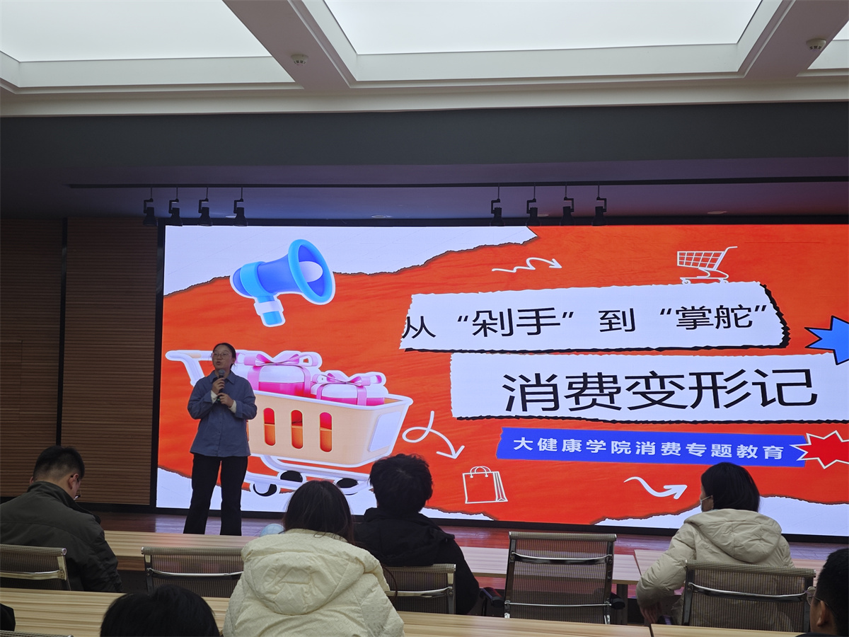 为引导学生树立科学消费理念,远离非理性消费陷阱,11月20日大健康学院2025级辅导员王雪丽老师“从‘剁手’到‘掌舵’:我的消费观变形记”为主题,开展了一场生动实用的主题班会,通过案例分析、数据分享、互动交流等形式,完成了一次消费观的“思想蜕变”。