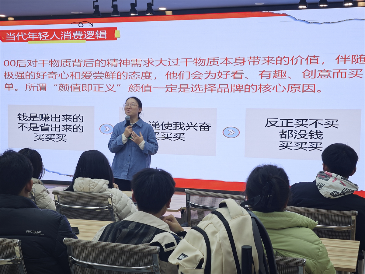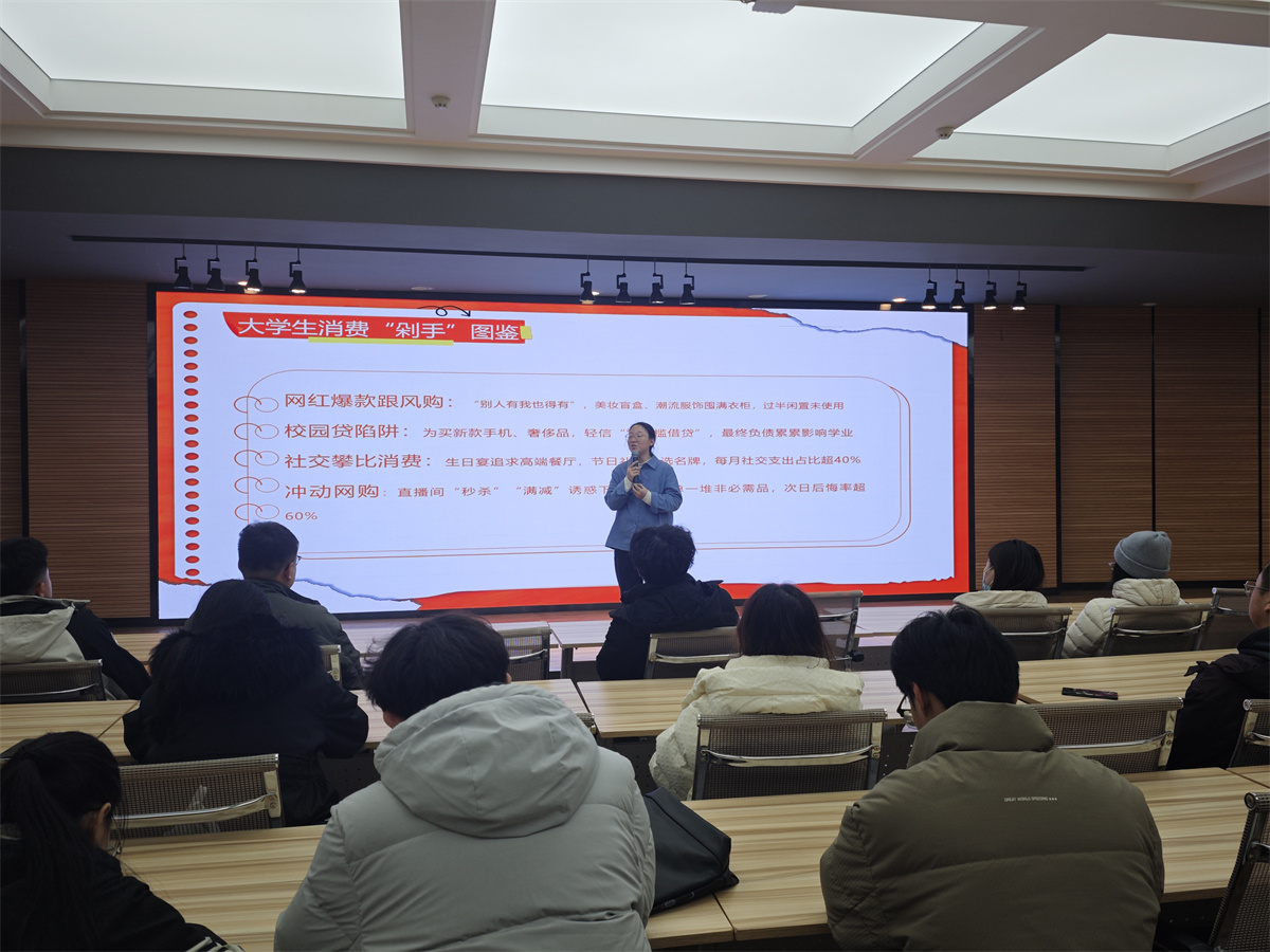 在互动交流环节,学生们踊跃分享自身经历:刘旭鹏同学吐槽“为凑满减多买三件非必需品”,也有同学分享“每月存10%生活费,半年后买了专业书籍”。大家围绕“如何拒绝 peer pressure”“直播间购物避坑”等话题展开热烈讨论,纷纷表示收获颇丰。