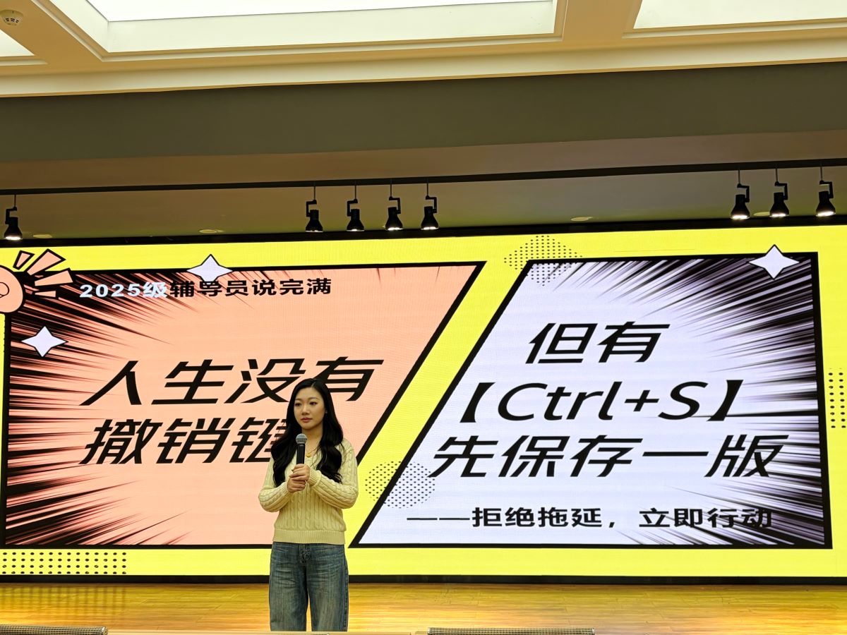 时光如白驹过隙,青春容不得片刻蹉跎。为助力2025级新生挣脱拖延桎梏,涵养高效行动力,11月21日,晋中信息学院大健康学院25级辅导员常佳老师展开了以“人生没有撤销键 但有【Ctrl+S】”为主题的辅导员说完满活动。常佳老师以深入浅出的阐释、鲜活生动的案例与干货满满的方法,为同学们拨开拖延迷雾,点亮逐梦征程。