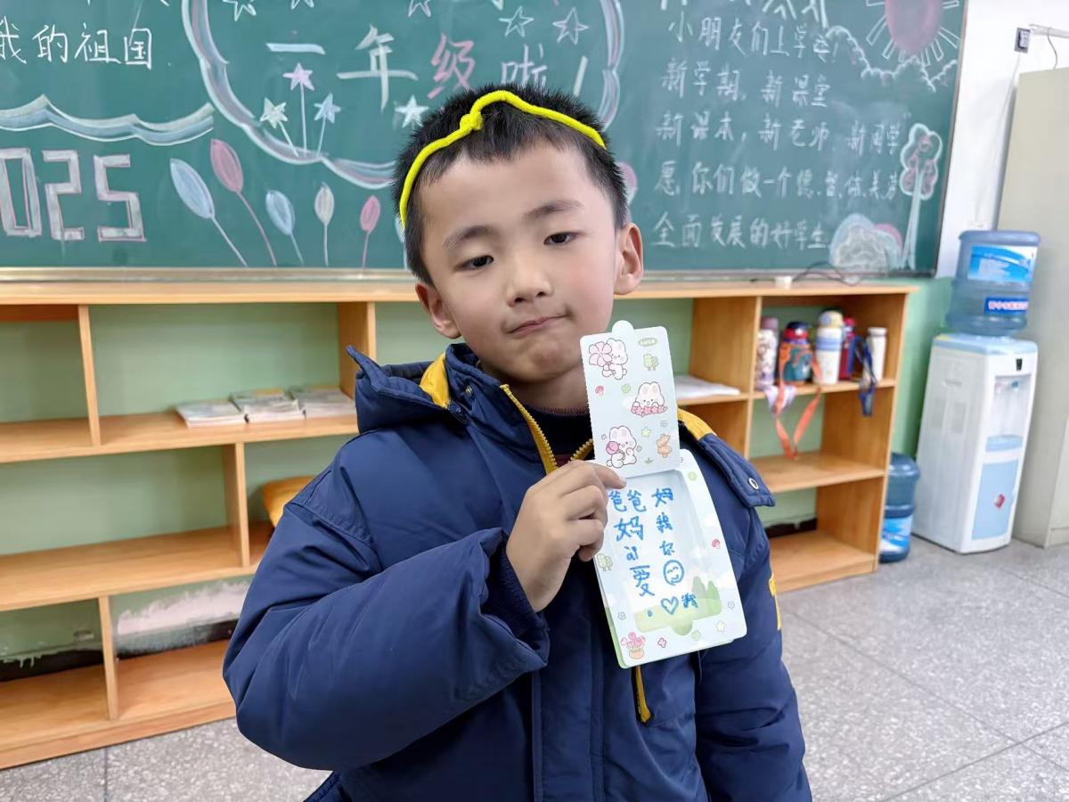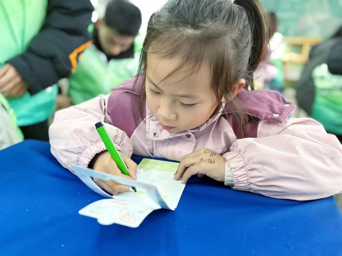 “一纸贺卡承心意,万般温情系笔尖。”“随着印着雪花等图案的冬日主题贺卡与彩笔摆上桌,活动自然过渡到情感表达环节。孩子们静下心来,用自己的方式传递冬日暖意。他们捧着贺卡,认真地思考着要写的话语。笔尖在纸页上轻轻游走,将心底的感恩与心愿细细书写字迹或许稚嫩,语言或许简单,但每一句都承载着纯粹的情感,每一张贺卡都成为连接心灵的纽带。