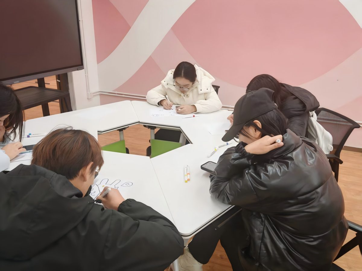 “内卷不停、焦虑不止的校园日常,谁还没经历过?别慌!绘画正是给心灵‘松绑’的绝佳方式!”活动伊始,活动组织者们以“艺术疗愈与情绪管理”为主题开启分享环节。通过趣味盎然的案例解析与通俗易懂的理论科普,生动阐释了绘画对情绪调节的积极作用,传授了用艺术疏导压力的实用技巧,瞬间点燃全场热情。现场学子专注聆听,纷纷提笔记录“解压干货”,一场充满期待的心灵探索之旅正式拉开帷幕。