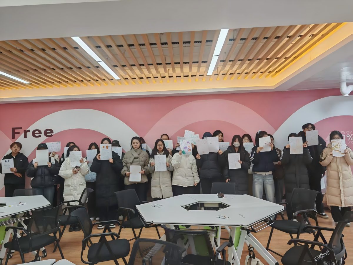 活动最后进入温情寄语环节,温暖与欢乐持续加码。彩色便签化身“暖心使者”,“愿你永远是阳光开朗的少年”“赶走不累,绩点翻倍”“迷茫退退退,好运来来来”等俏皮又真挚的祝福贴满“心愿墙”,瞬间治愈了所有疲惫。活动尾声,同学们小心翼翼地收起画作与寄语,将这份独特的心灵纪念珍藏。大家纷纷表示,这场活动堪称“校园解压天花板”,不仅解锁了全新的放松方式,更收获了满满的快乐与温暖。