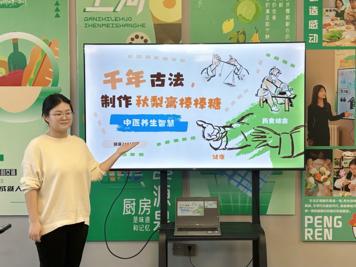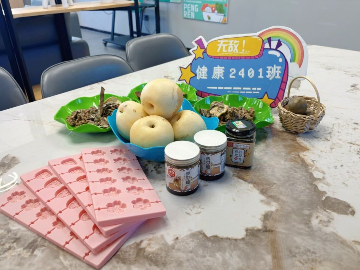 11月25日下午,健康2401班同学们齐聚上河书院203右岸厨房,开展“梨香凝萃:定制冬日甜润信号”手工实践活动。活动以秋梨膏棒棒糖制作为核心,深耕药食同源文化内核,让中华传统养生智慧在生活化实践中浸润人心。