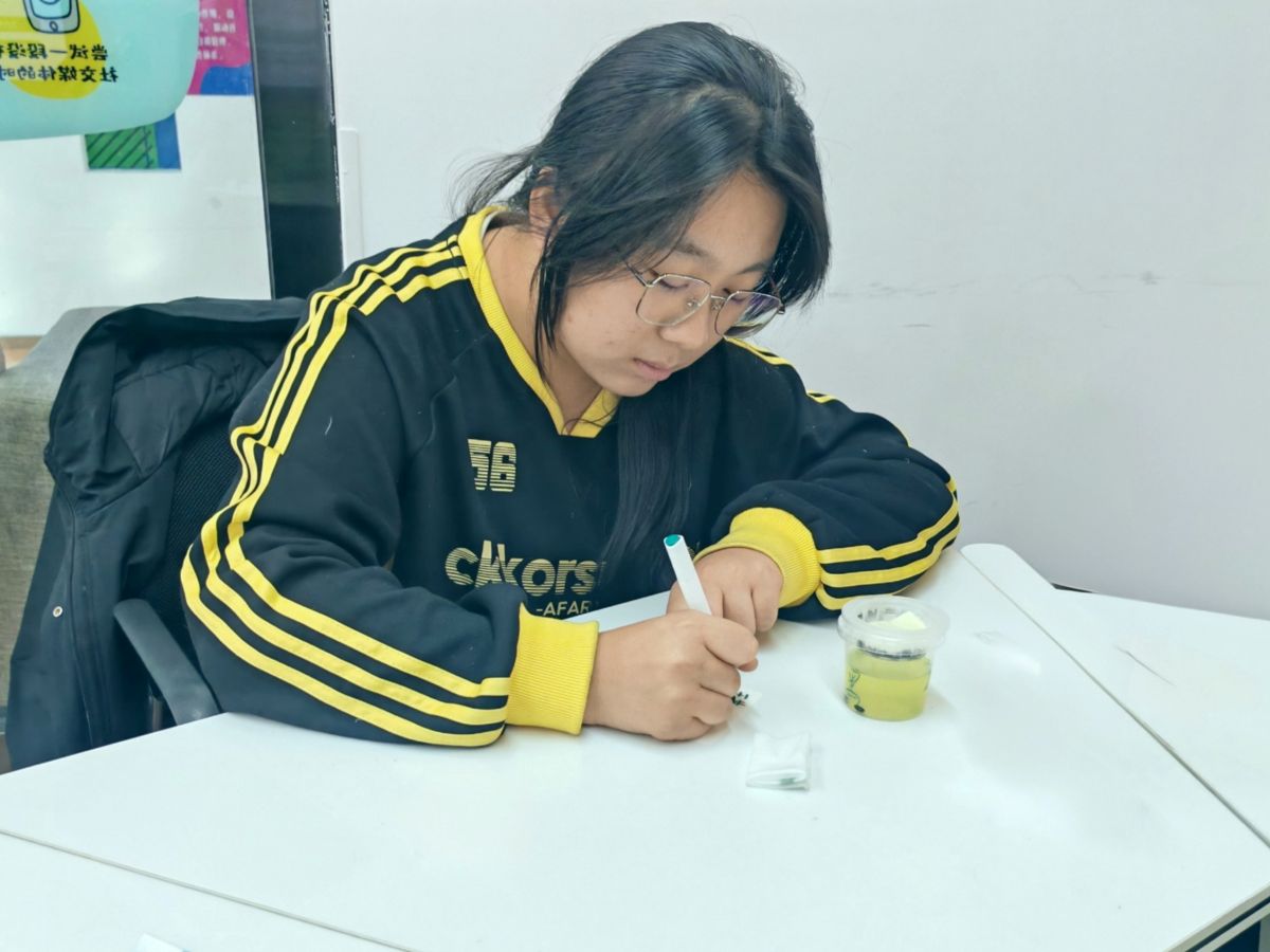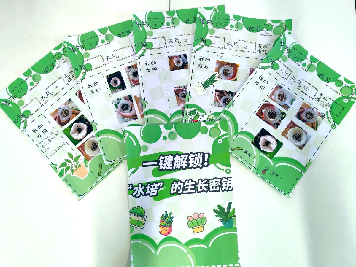 同学们认真聆听主持人的示范,小心翼翼地完成播种、调配营养液、定植等步骤。大家专注的神情里,满是对生命的敬畏与珍视。操作结束后,纷纷给自己的植物取名,贴上卡通贴纸,记录下初始模样、所学知识与明日期待,一张张“生命初印卡”上,写满了对未来的美好憧憬。