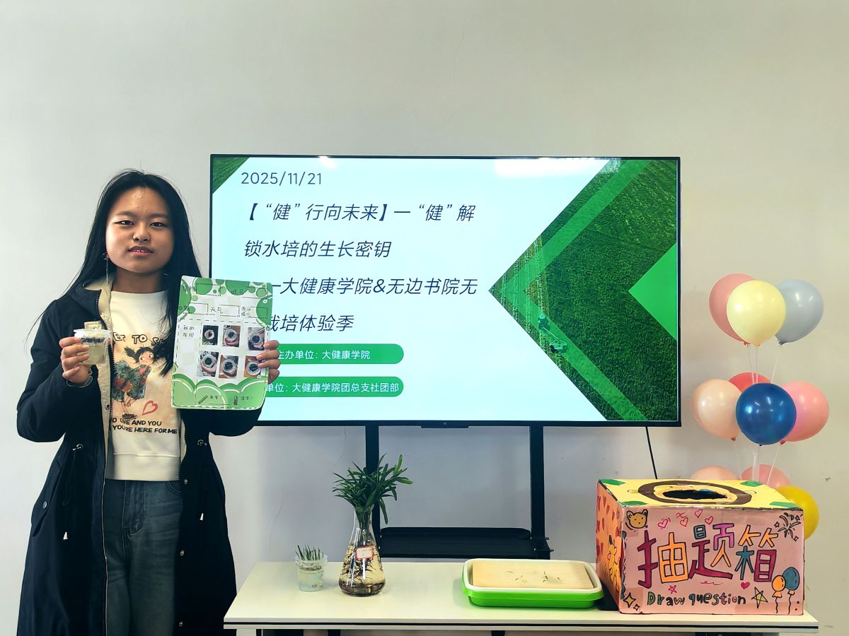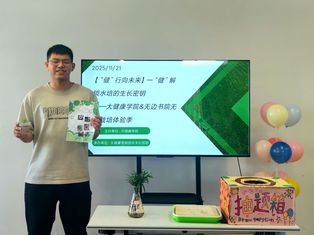 当一颗种子邂逅清水,当耐心浇灌遇见生命绽放,一场以“生命艺术创作”为核心的水培主题活动,在书院温情启幕。11月21日-28日,解锁为期一周的专属水培时光。大健康学院30名同学怀揣着对自然的好奇,从播种许愿到守护探索,再到收获分享,在与植物的朝夕相伴中,感受生命成长的奇妙,解锁“守护生命、热爱生活”的全新生活方式。