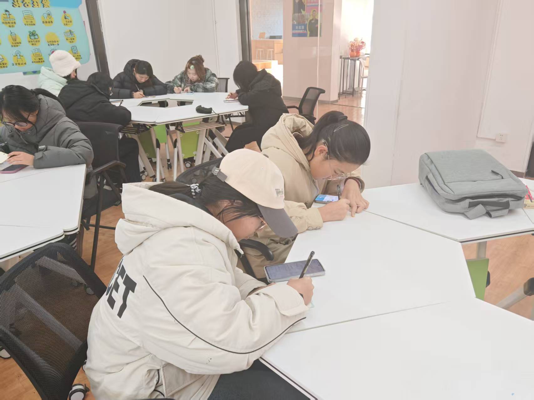 创作环节中,“冬日信笺包”里的信笺、彩笔等材料,搭配“风的形状”“校园的冬”等创作方向,让同学们迅速进入沉浸式书写状态。有人以“银杏叶落在信笺角,你递来的热奶茶还冒着白汽”定格日常暖意,有人用“图书馆窗外的冬阳,三行字的间隙里,光斑跳了半页”铺陈细腻心动,更有同学们将操场的晚风、宿舍楼下的路灯写进短句——抛开“文采”的束缚,每一笔都是真诚的情感流露,现场笑语与笔尖摩挲声交织,尽显青春的松弛与创造力。