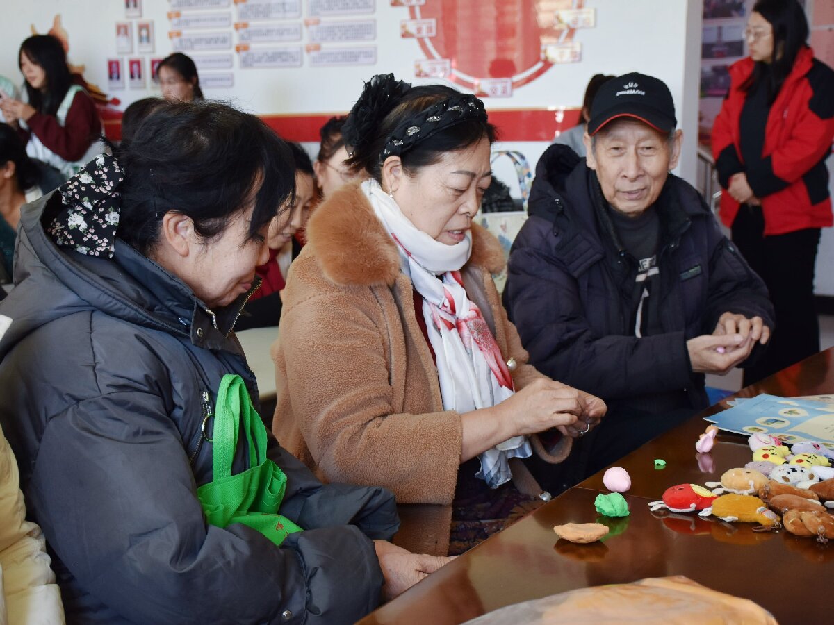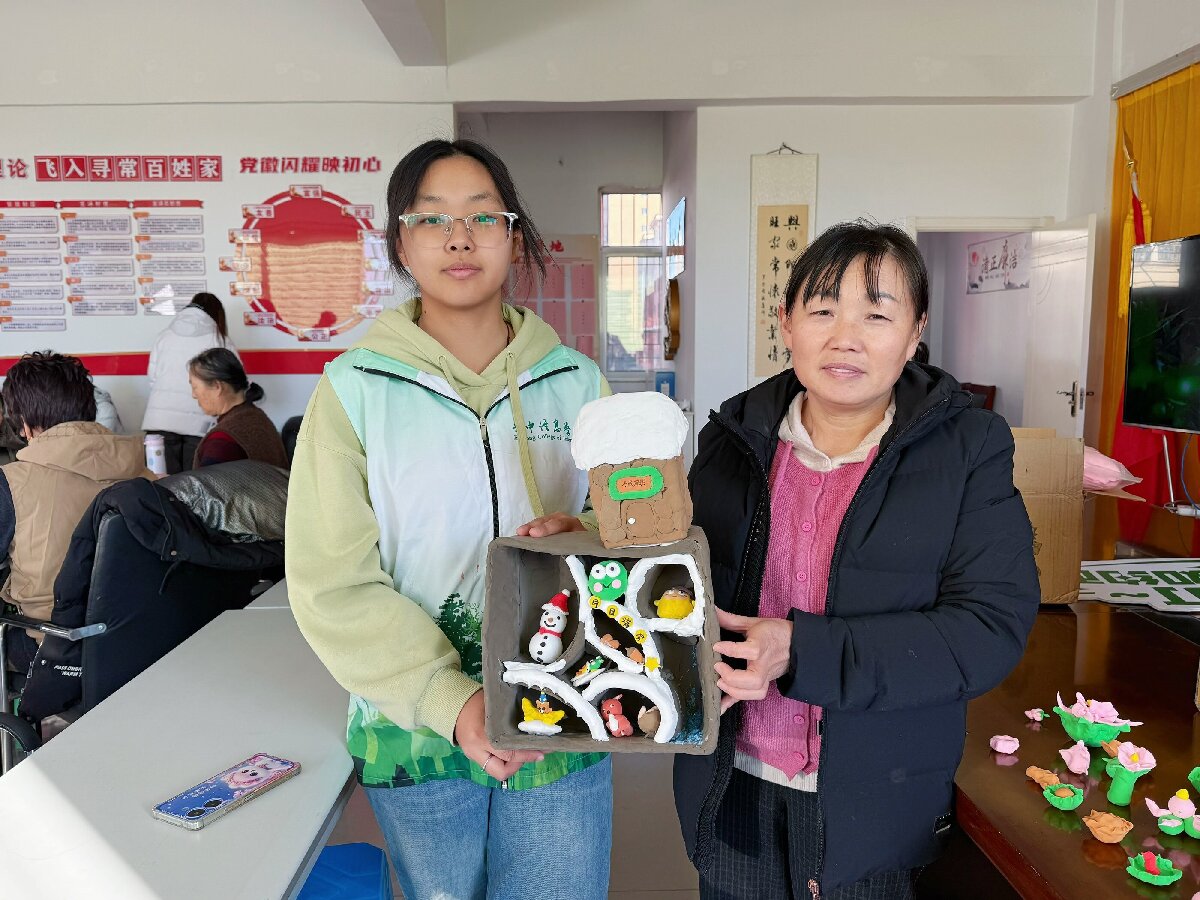 居民用粘土揉塑覆着雪顶的迷你小屋时,志愿者马蕊留意到一位居民手中的粘土已然干裂,便立刻取来保湿喷雾轻喷在粘土表面,再用掌心缓缓揉搓使其软化,随后手把手带着居民捏出圆润的屋角,雨林生物的专属栖息场景也因这一细节更显精巧。创作过程中,大家边调整仿真植物的疏密层次,边细细雕琢粘土装饰的纹路;居民塑出雪顶小屋后,志愿者又顺势将雪人、小猴等萌宠形象轻嵌屋旁,联手让雨林生物的栖息场景鲜活呈现。指尖的创意互动让手工乐趣漫溢全场,这方凝聚着协作温情与巧思的小天地,让守护家园、敬畏生命的信念,化作每个人可感可及的行动自觉,沉淀为浸润日常的文明共识。