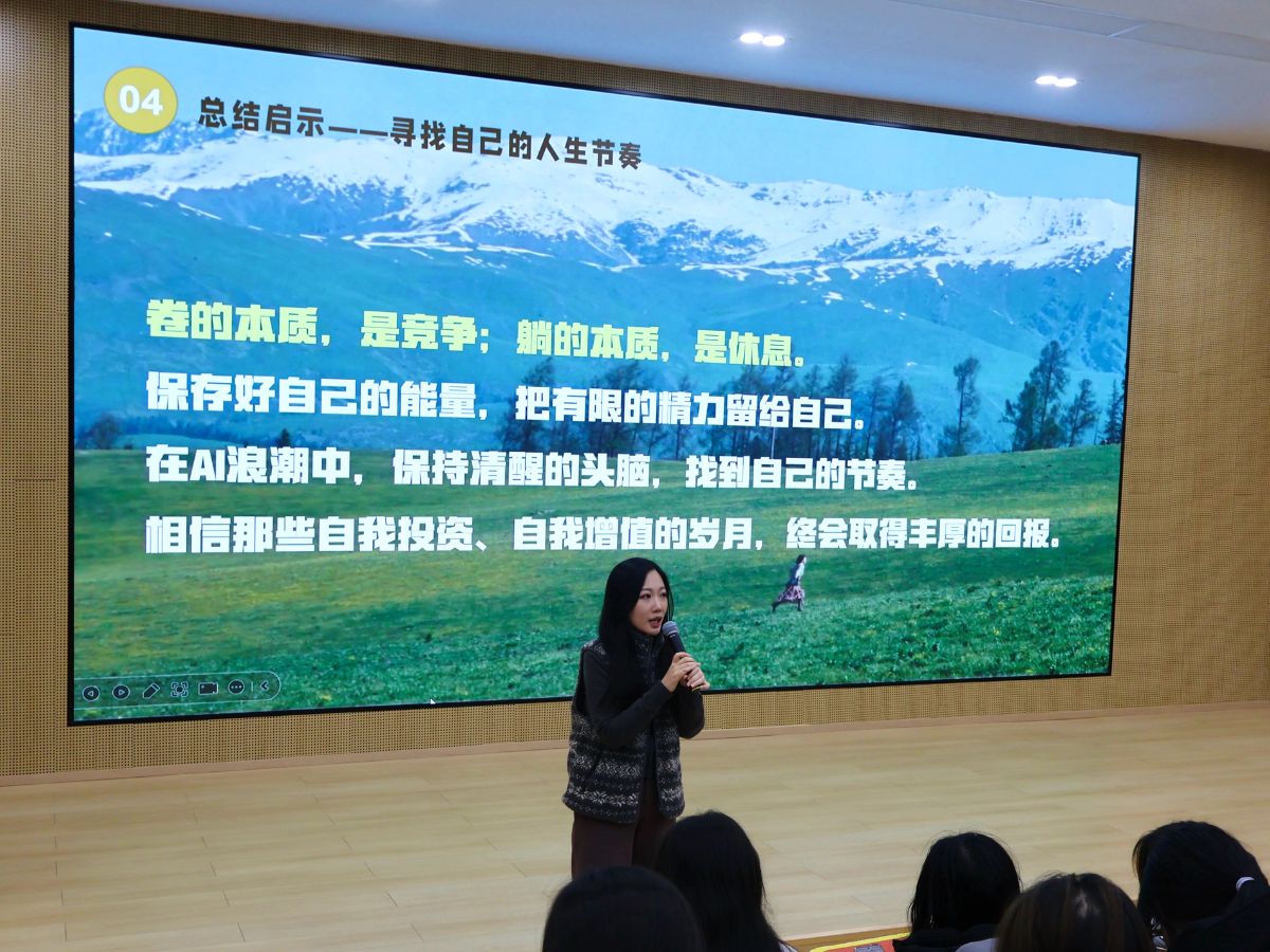 “卷是竞争,躺是休息,二者皆是生命的必要节奏。”常佳老师在结尾寄语,希望学子们守住内心节奏,将精力留给值得的事,在AI浪潮中脚踏实地、从容生长。