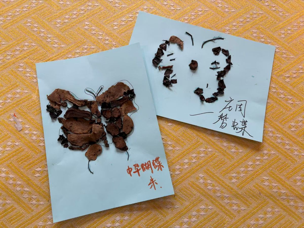 创作环节结束后,一场意蕴悠长的“命名仪式”悄然开启。几幅作品的创作者欣然提笔,为作品注入灵魂之名。他们分享时,灵感如清泉流淌,有人感叹废弃物里竟藏着大地最朴素的颜料。所有作品被精心布置,瞬间化作一座充满故事的小小画廊。大家漫步其间,时而驻足品评,时而拍照留念。那些原本沉寂的草本残余,此刻正以艺术之名被赋予新的生命力。