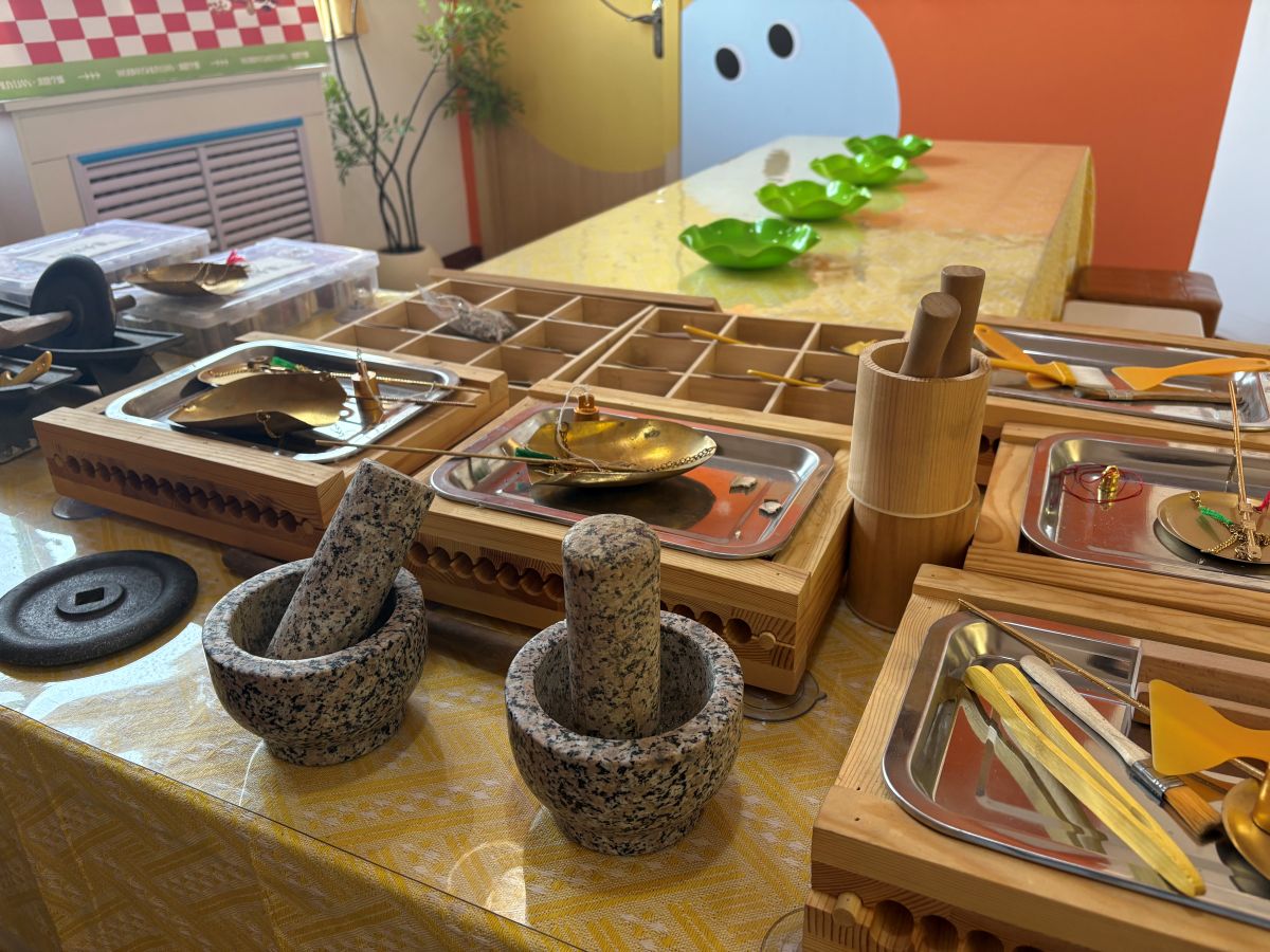 活动拉开帷幕,一场名为“中药渣探秘”的趣味环节率先展开。志愿者化身自然诗人,娓娓道来,这些看似枯槁的残渣,原是当归、黄芪等草本精灵,曾以补血益气的功效守护健康。即使药性融入汤剂,它们仍蕴藏着色彩的呼吸与纤维的记忆,等待被温柔唤醒。现场展示了安全环保的植物染料提取术,并通过固色方法为色彩穿上“永恒外衣”,让本草废弃物在艺术中绽放古朴而斑斓的生命力。