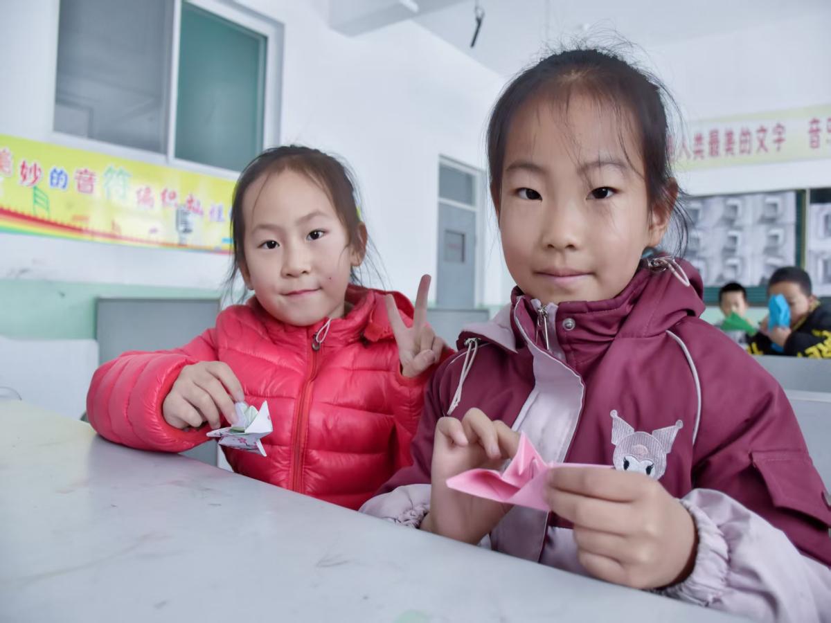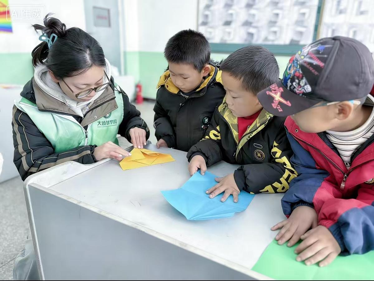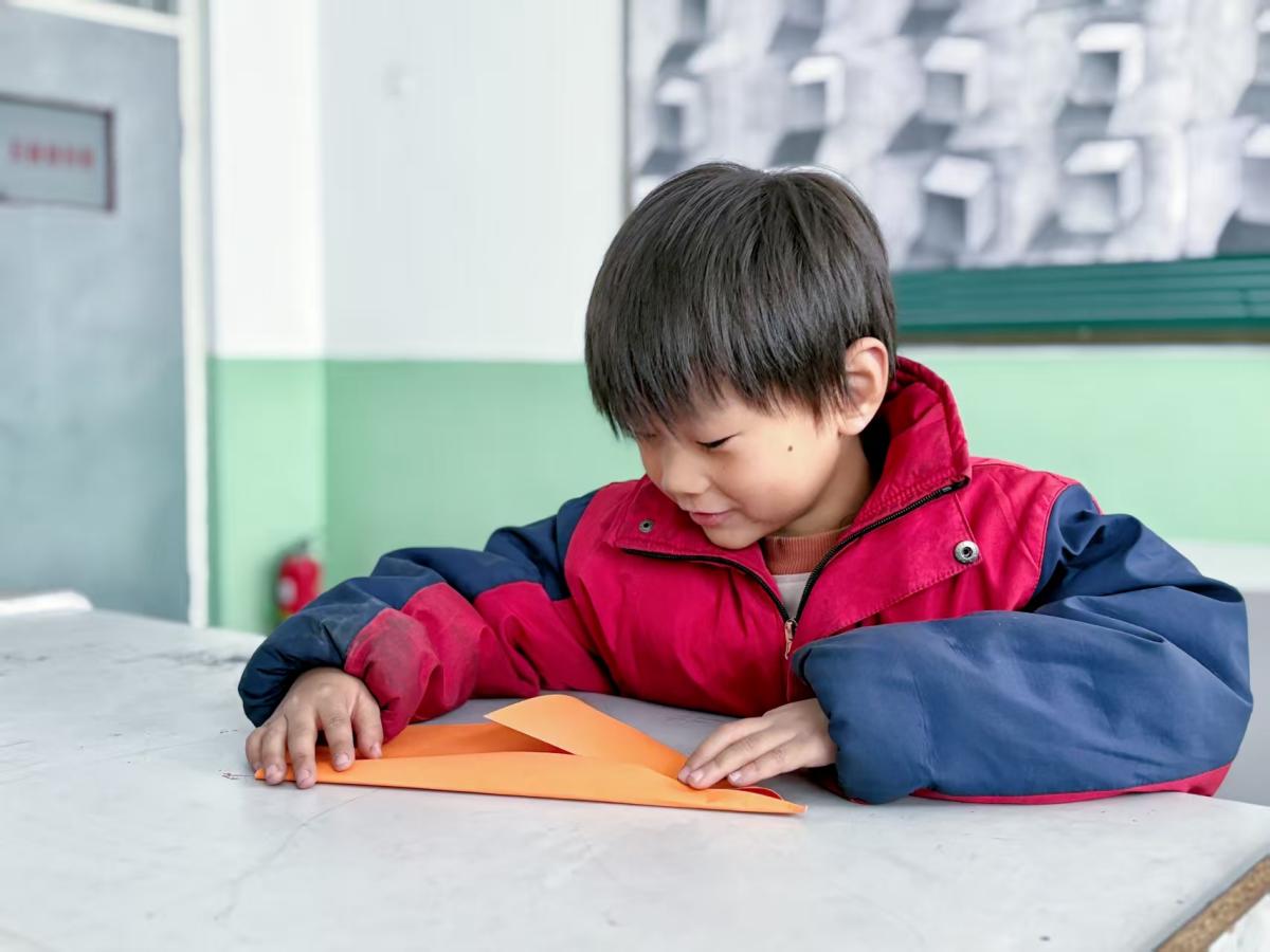 创意手作环节,彩纸发到每一双小手中。志愿者们蹲在孩子身边,指尖带动指尖,将方寸纸张折叠成可飞翔的形态,志愿者们现场示范和平鸽造型纸飞机的折法,耐心指导孩子们折叠、塑形。彩色折纸在稚嫩的手中翻飞,很快变成一只只灵动的和平鸽纸飞机,飞机型态各异,但同学们都在其中寄予了对前辈们的致敬以及对和平的希冀。有的同学迫不及待的将纸飞机放飞,看着承载着美好祈愿的纸飞机腾空而起,孩子们仰头欢呼、追逐奔跑,纯真的笑容与蓝天相映成景,让和平理念通过具象载体深深扎根心底。