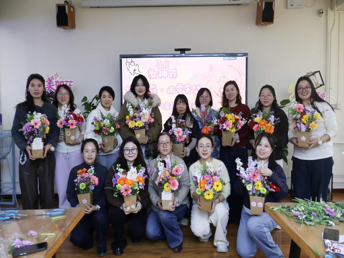 活动尾声,全体参与教职工手持自己的花艺作品合影留念,镜头将一张张绽放的笑脸与娇艳的鲜花定格,既记录下女教职工们优雅自信的美好瞬间,也彰显出晋中信息学院教职工大家庭的温暖与凝聚力。