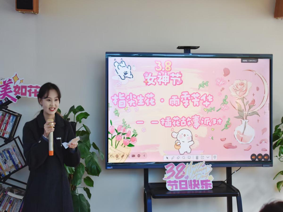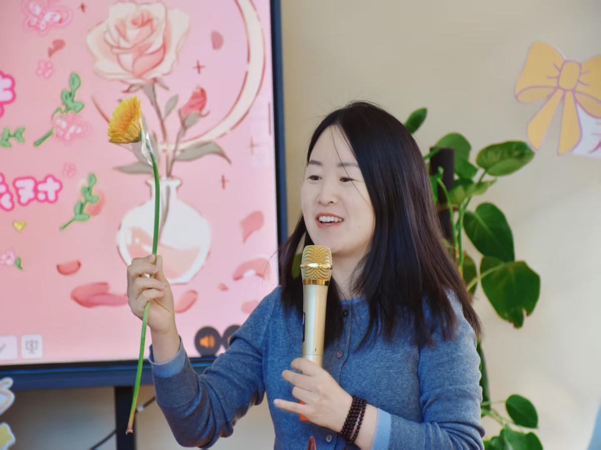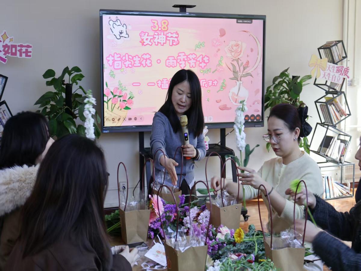 活动伊始,主持人以春日花语为引,营造出温馨雅致的活动氛围,引导全体女教职工暂时放下工作的忙碌,沉浸于花艺创作的美好时光。花艺科普环节,特邀张甜甜老师进行专业讲解。张老师从花卉色彩心理学搭配技巧、各类花材的寓意内涵,到鲜花日常保鲜方法等方面进行深入浅出的讲解,既分享了专业的花艺知识与实操技巧,更传递出与自然相融、于日常中发现美的生活理念,让在场女教职工在学习中提升审美素养,学会在琐碎的日常里捕捉精致与美好。