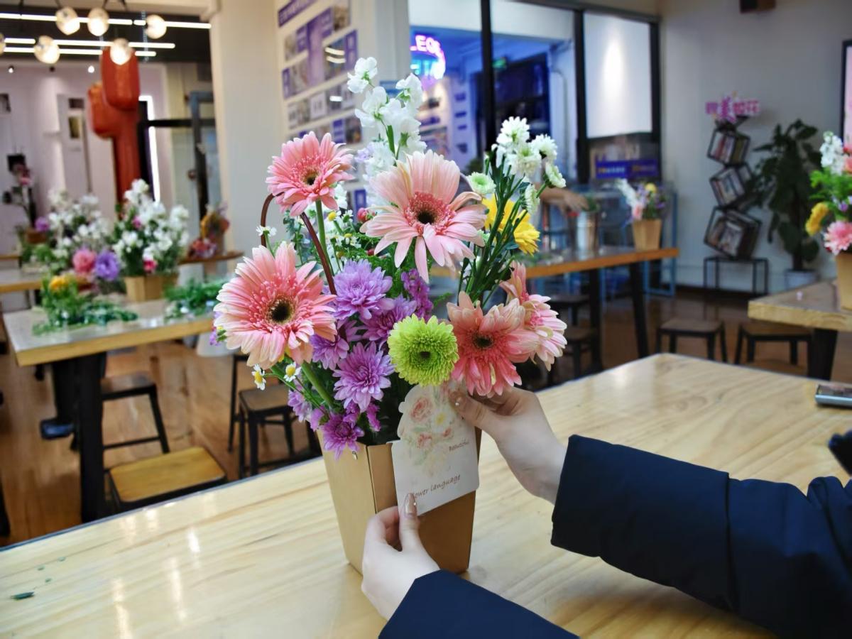 手作实践环节,成为本次活动的高光时刻。舒缓的音乐萦绕现场,女教职工们在花艺师的专业指导下,全身心投入花艺创作。修枝剪叶、构思造型、搭配层次、点缀装饰,每一个步骤都凝聚着巧思与用心,每一束花艺作品的诞生,都是创作者内心审美与情感的独特表达。创作过程中,大家相互交流技巧、分享心得,现场花香四溢、暖意融融。经过近一小时的精心创作,一盆盆错落有致、生机盎然的花艺作品相继完成,或热烈奔放、或清新淡雅,各具特色的作品不仅展现出女教职工们不俗的审美品味,更承载着大家对生活的热爱与对美好未来的期许。谈及创作感悟,老师们纷纷表示,平日里忙于教学与科研工作,鲜有机会静下心来感受这样的慢时光,插花的过程看似是修剪搭配花材,实则是梳理内心、放松身心的过程,在与花草的对话中,不仅体会到了手工创作的乐趣,更收获了内心的平静与治愈;还有老师提到,花艺创作中的色彩搭配、层次构建,与教育教学工作有着异曲同工之妙,都需要用心构思、精心打磨,这次体验也为后续的工作与生活带来了新的灵感;更有老师感慨,此次活动让大家感受到了学院的暖心关怀,在彼此的交流互动中,不仅增进了同事间的情谊,更感受到了学院大家庭的温暖。