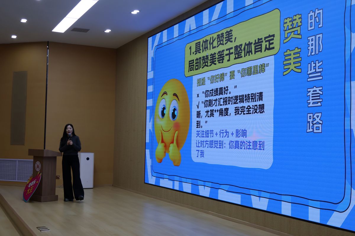 随后,常佳老师从心理学角度拆解了赞美的能量。从洛克菲勒夸赞失误助手、最终使其成为公司中坚的经典案例,到“皮格马利翁效应”揭示的期待力量——当我们被相信,我们真的会成为那个被期待的样子。赞美,不仅是语言的馈赠,更是信念的传递。