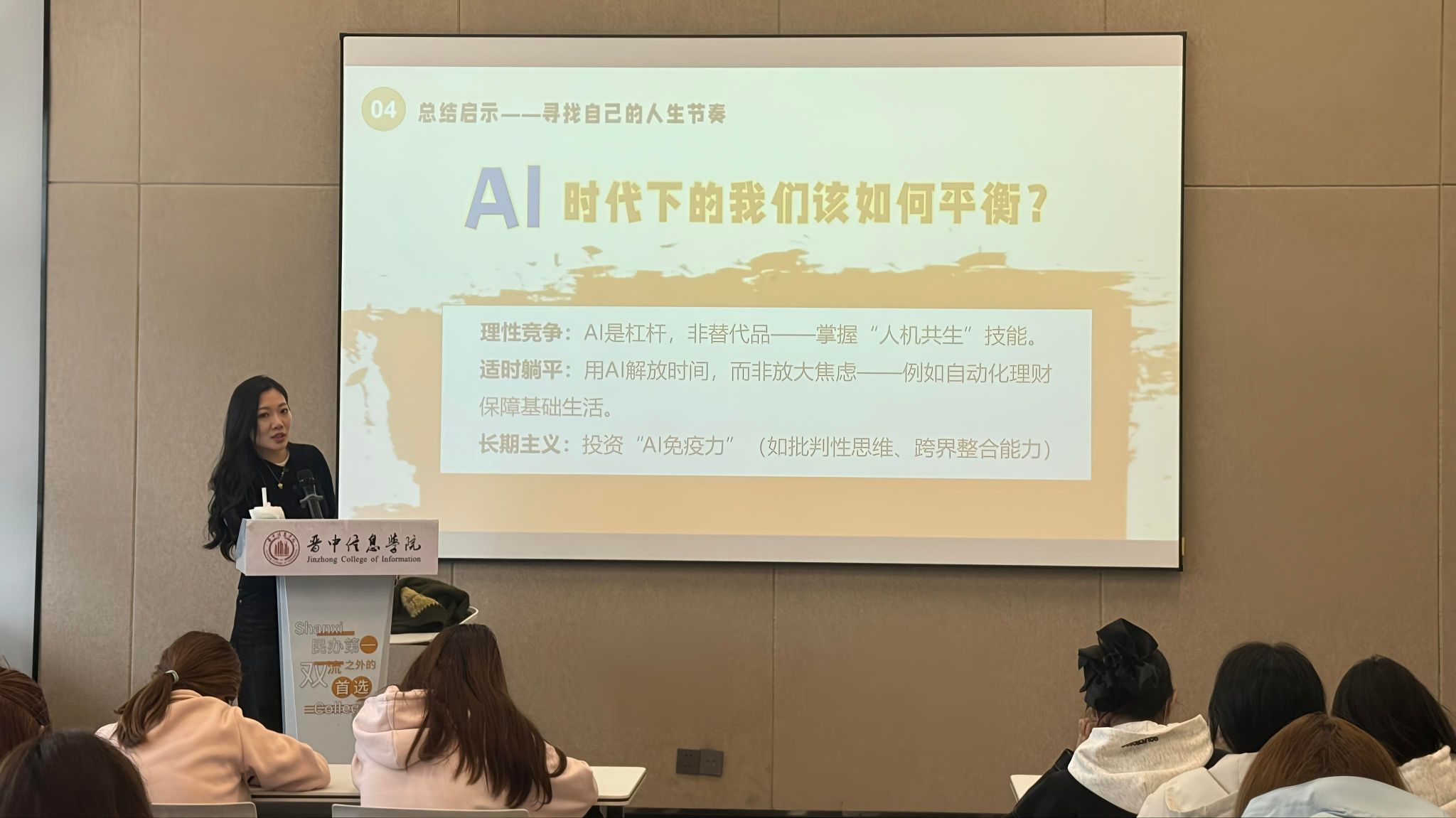 AI技术深刻改变世界的今天,常佳老师的这场主题分享会恰逢其时地为青年学子提供了一份“心灵导航图”,引导大家在变革的时代中,既不盲目跟风“内卷”,也不消极逃避“躺平”,而是以动态平衡的智慧,书写属于自己的青春篇章。
