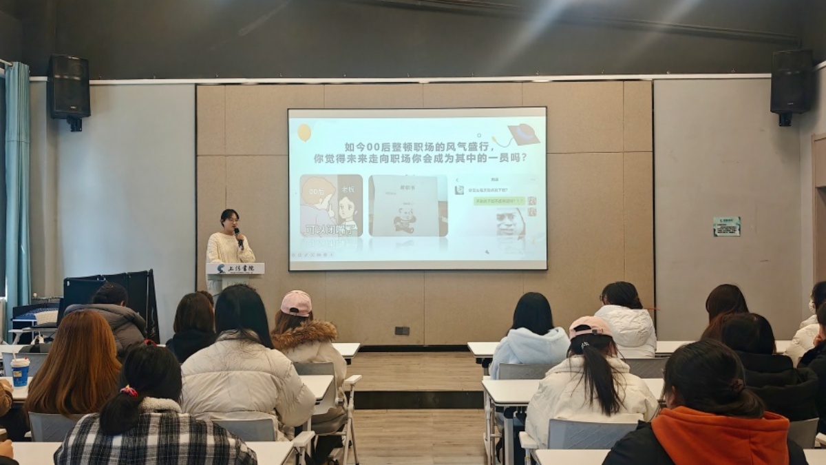 讲座伊始,刘悦老师以当前网络上热议的“00后整顿职场”现象为切入点,结合职场短剧中女主角林娜的一系列行为,引导学生思考何为“职场雷区”。她指出,诸如“讲话没分寸”“私自干扰工作”“缺乏责任心”等行为,实际上反映出部分同学尚未完成从“学生”到“职业人”的角色转换。