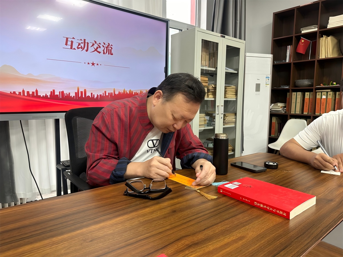 随着活动渐入尾声,“党员手写深情贺祖国”书签环节温情开启,为这场活动增添了更多感动与力量。党员们纷纷拿起笔,在书签上郑重写下对祖国的美好祝福。真挚话语里,满是对祖国的热爱,更藏着为民族复兴奋斗的决心。