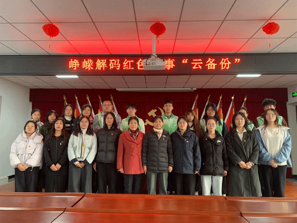 活动首站,学生代表们来到鼓楼社区服务中心,社区贾敏书记围绕国际时事展开分享,叮嘱同学们“不忘历史方能砥砺前行”,并为青年学子的成长发展提出建议。学生党员张艳花就历史学习与青年责任积极提问,现场互动氛围热烈。座谈结束后,学生代表与社区工作人员在“峥嵘解码红色故事‘云备份’”主题背景前拍摄合影,记录下活动的重要瞬间。