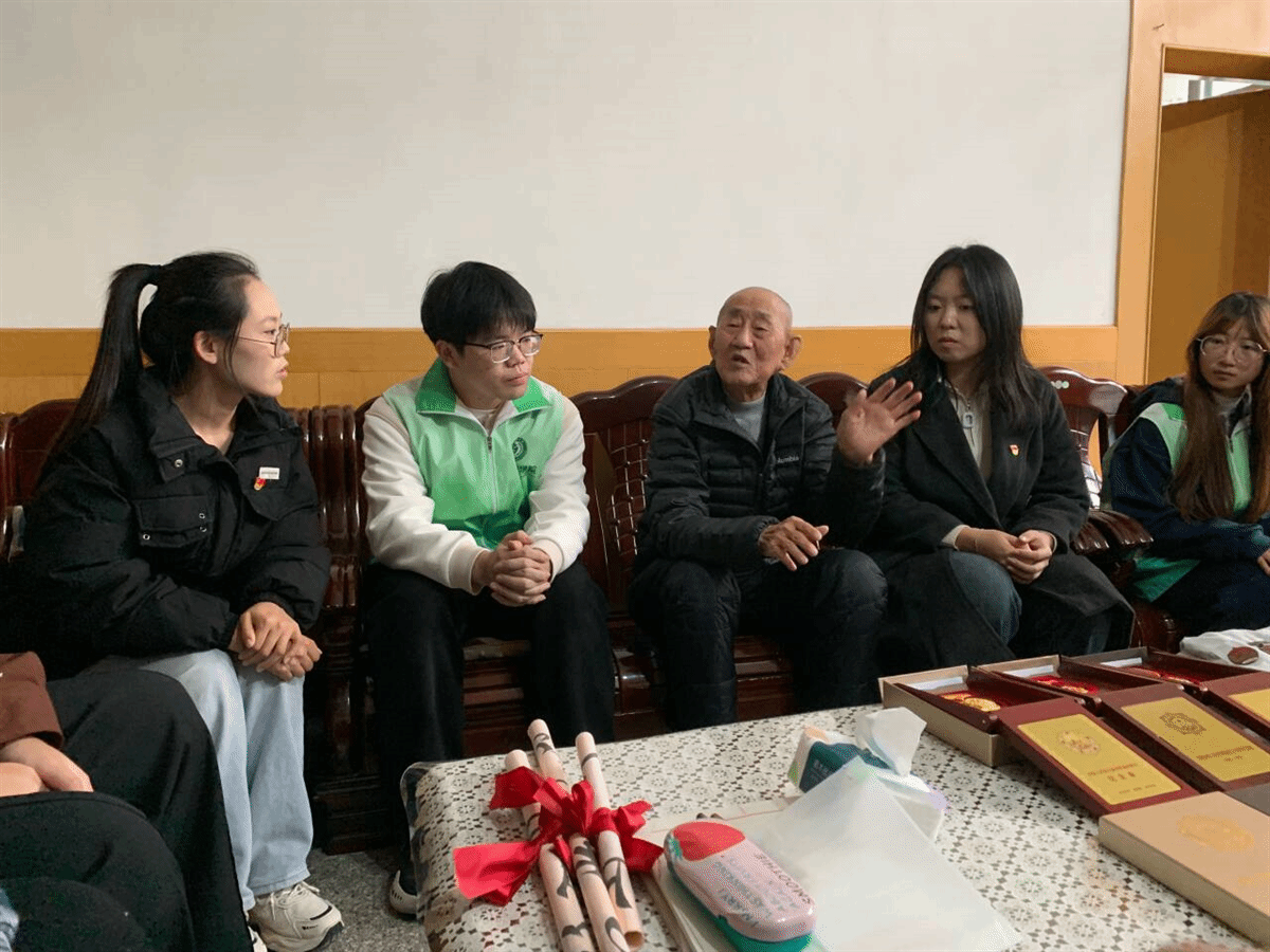 在社区工作人员的带领下,学生代表们来到抗美援朝老兵家中。老人拿出珍藏的中国人民抗日战争胜利80周年纪念章、庆祝中华人民共和国成立70周年纪念章等多枚荣誉勋章,一一介绍背后的故事。他用朴实的语言缓缓讲述抗美援朝战场上的烽火岁月——硝烟弥漫的阵地、战友间的生死扶持、保家卫国的坚定信念,每一个细节都深深触动着在场学子的心。大家围坐聆听,在沉浸式的讲述中感悟革命先辈的英勇无畏,体会和平生活的来之不易。